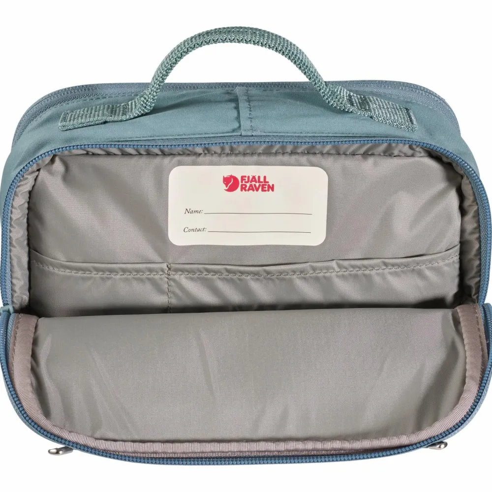 Der Kånken Toiletry Bag Kulturbeutel von Fjällräven lässt sich von beiden Seiten öffnen und verfügt über zwei geräumige Hauptfächer, die übersichtlich Platz für eine Menge Accessoires bieten. Er ist aus robustem G-1000 HeavyDuty Eco S gefertigt und mit einer wasserabweisenden PU-Behandlung im Inneren sehr pflegefreundlich. Für den Transport ist der praktische Kulturbeutel mit einem stabilen Tragegriff ausgestattet.