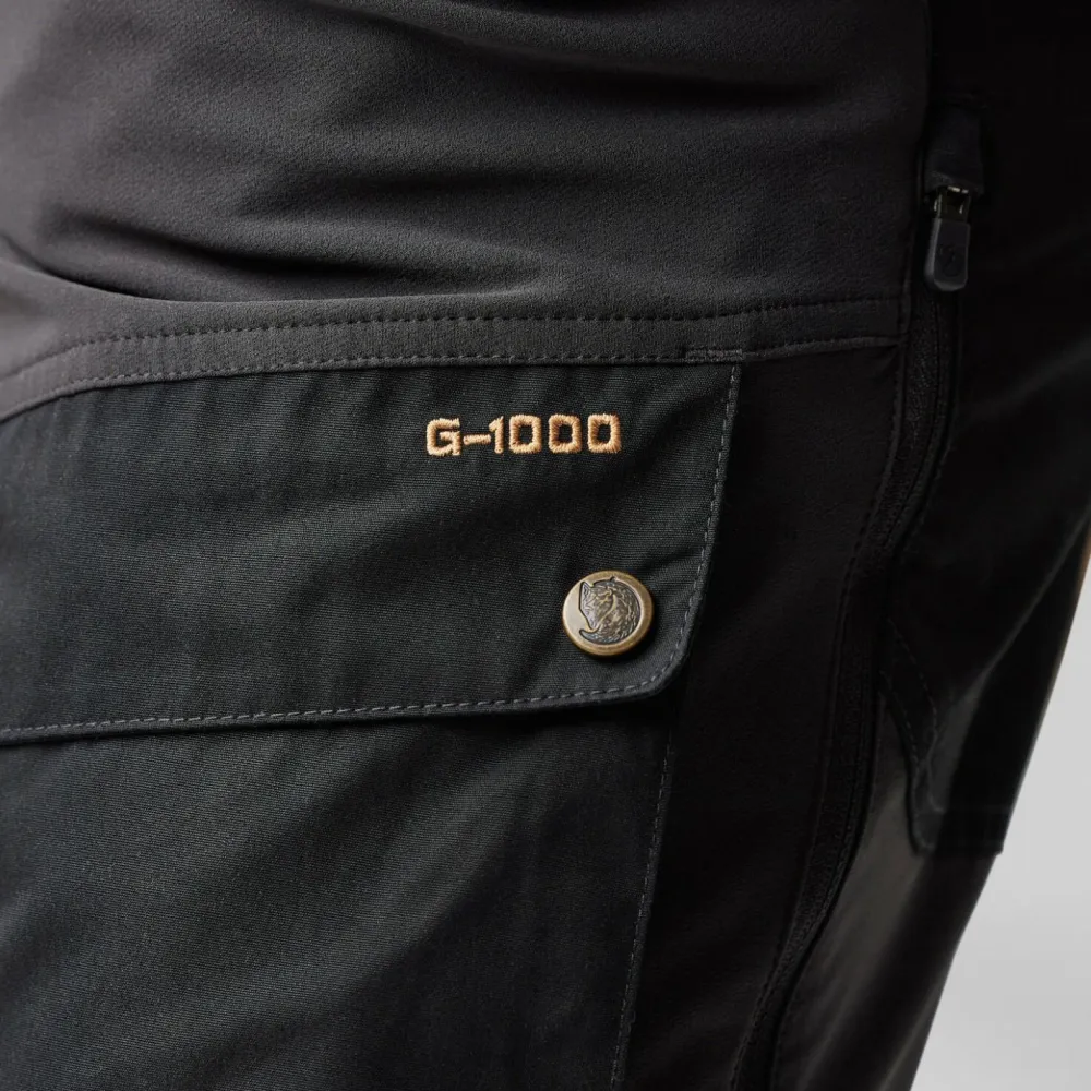 Die Hose besteht aus einem strapazierfähigen und hautfreundlichen Kunstfasergemisch mit Stretchanteil. Besonders beanspruchte Stellen wie Knie oder Taschen sind zusätzlich mit dem speziellen G-1000 Eco verstärkt. Dieses Material aus Bio-Baumwolle und recyceltem Polyester ist extrem robust und erhöht die Abriebfestigkeit der Hose deutlich. An den Knien befinden sich Öffnungen zum Einlegen von Polstern. Diese sind allerdings nicht im Lieferumfang enthalten.