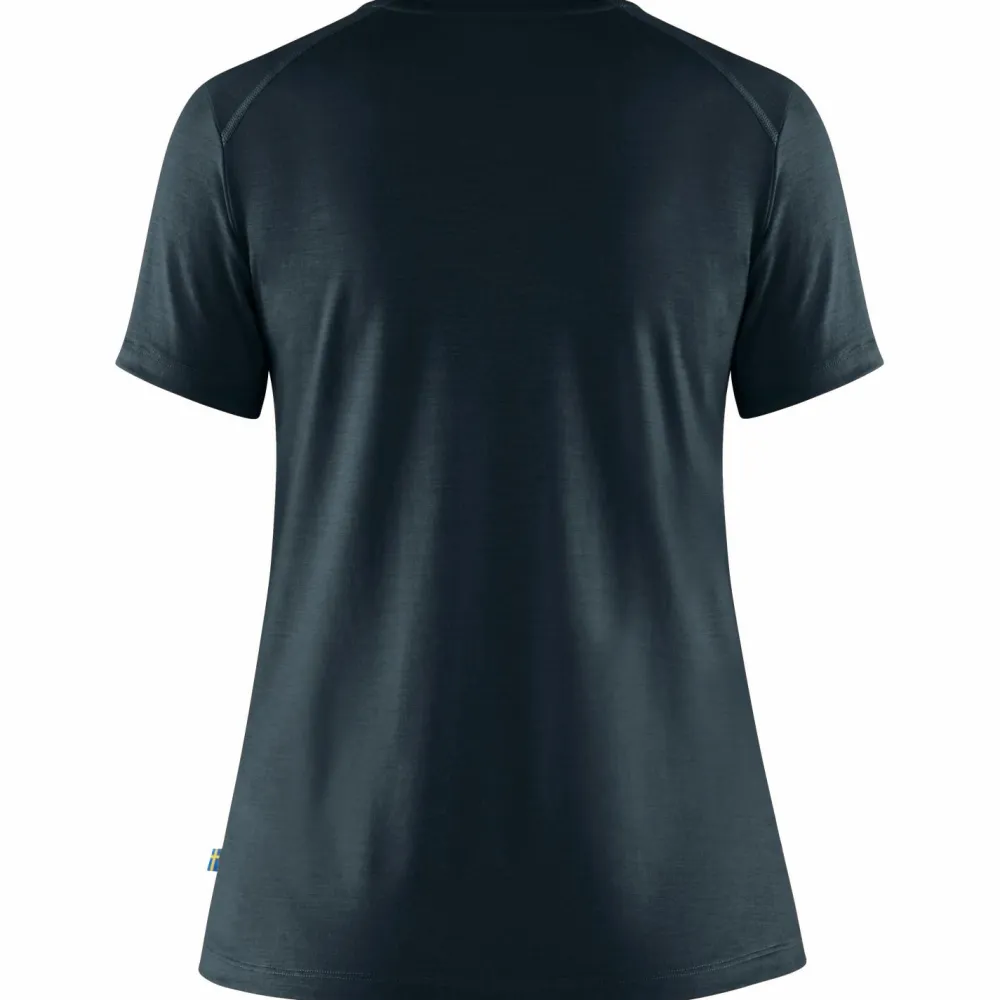 Der weite Schnitt des Women’s Abisko Wool S/S von Fjällräven sogt für optimale Ventilation beim Wandern und auf Reisen! Das T-Shirt besteht aus Merinowolle und recycelter Kunstfaser. Die Wolle wird von Fjällräven aus mulesingfreier und nachverfolgbarer Produktion bezogen. Dank der klimaregulierenden Eigenschaften der Wolle eignet sich das Kurzarm-Shirt ideal als erste Schicht zum Wandern, auf Trekkingtouren und selbstverständlich auch in der Freizeit.