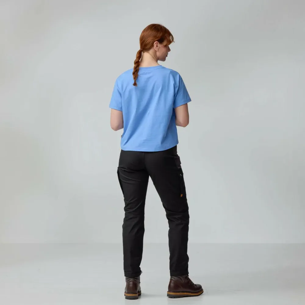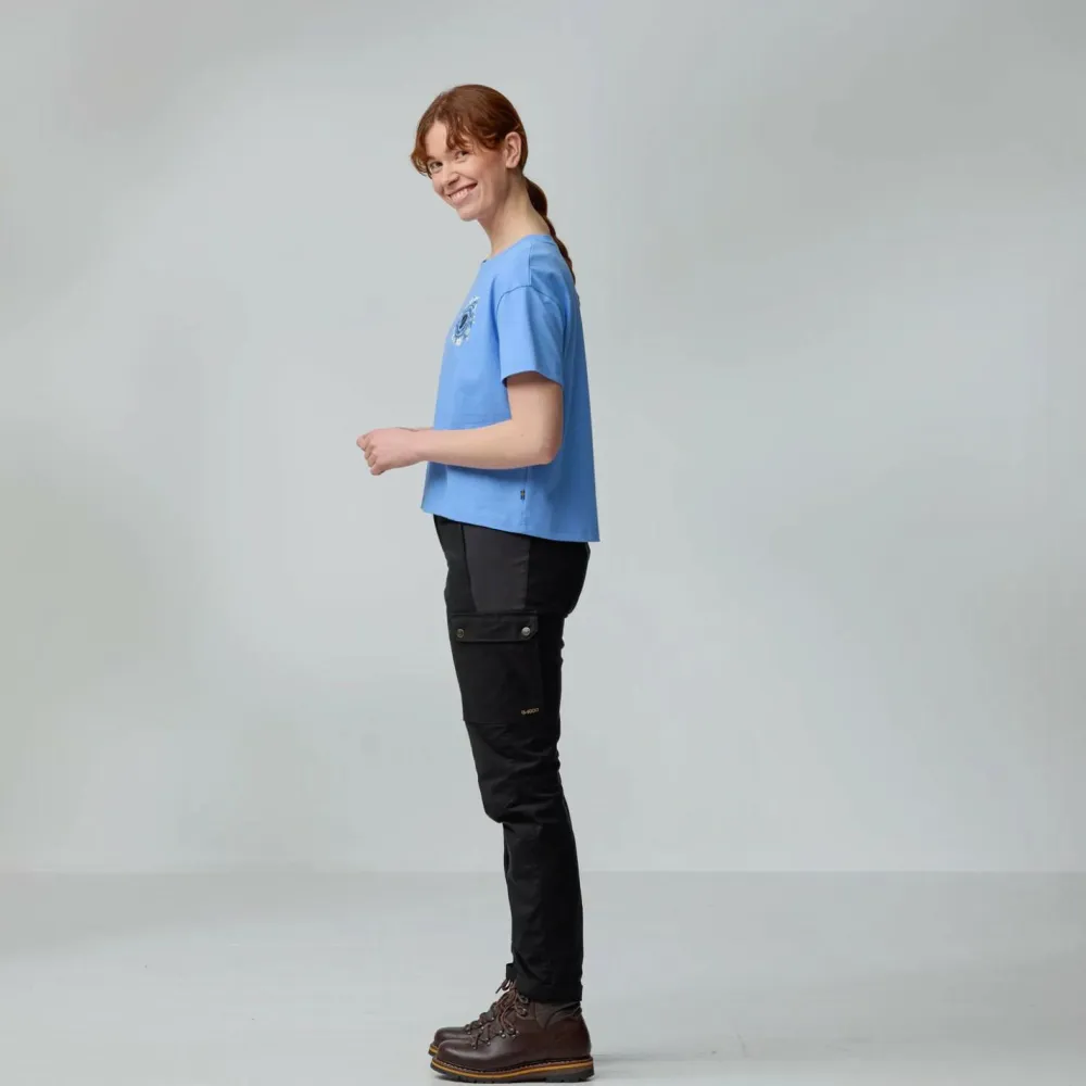 Das Women’s Fjällblomster Logo T-Shirt von Fjällräven ist eher locker und luftig geschnitten. Außerdem ist es als Cropped Cut Shirt im Vergleich zur regulären Länge leicht verkürzt. In Kombination mit der weichen Baumwolle trägt sich das Shirt so wunderbar locker und komfortabel.