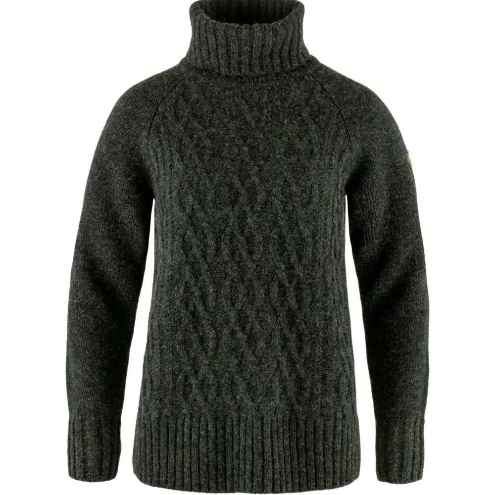 Der Women’s Övik Cable Knit Roller Neck Wollpullover von Fjällräven sieht nicht nur gemütlich aus, sondern schmiegt sich mit seinen weichen Materialien angenehm an die Haut. Wenn es draußen stürmt und schneit, lädt der Pulli zum Kuscheln auf dem heimischen Sofa ein. Ein schöner, warmer Strickpullover mit einem klassischen Zopfmuster auf der Vorderseite. Hergestellt wurde der Pullover aus hochwertiger Wolle und eignet sich perfekt als Zwischenschicht bei kühlen Herbst- oder Winterausflügen, sowohl auf dem Land als auch in der Stadt.