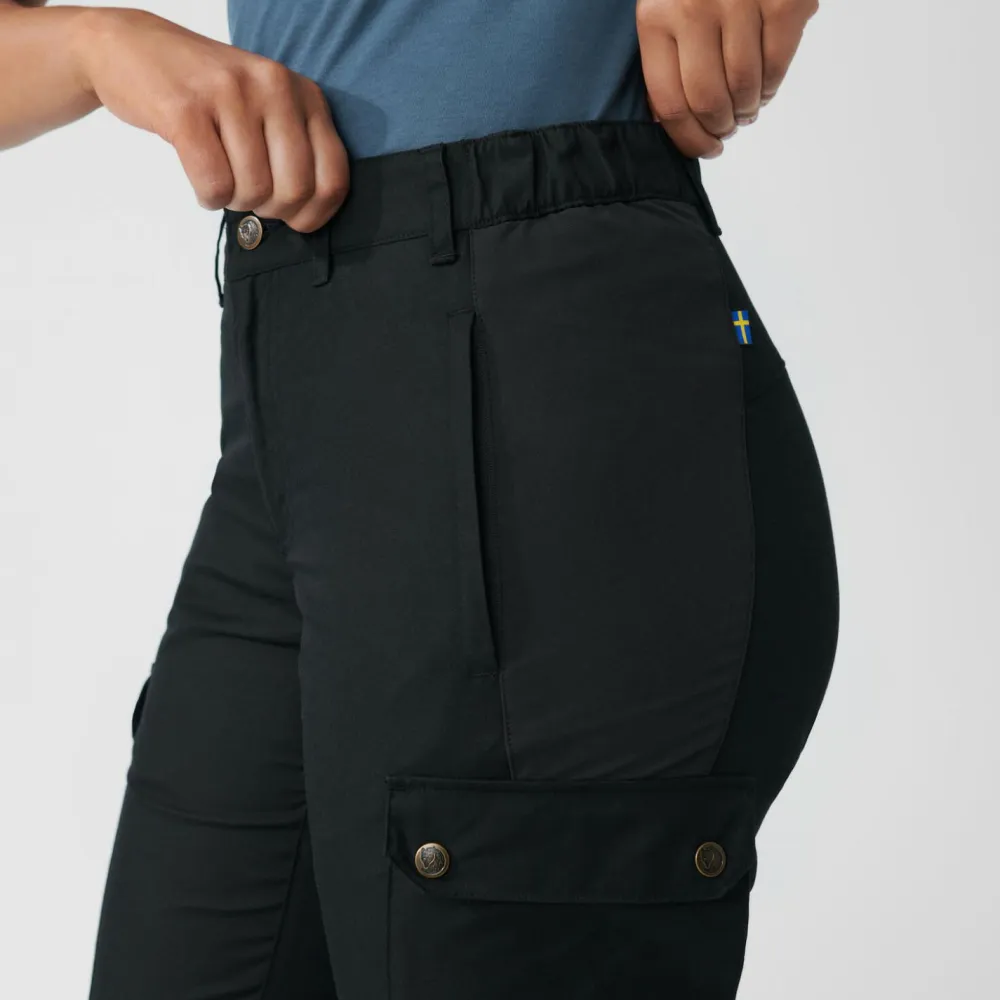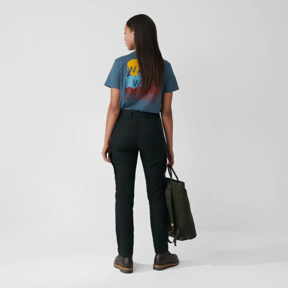 Eine Hose für den Alltag und die Trekking-Touren am Wochenende, die die jeweiligen Anforderungen perfekt kombiniert. Die Women’s Stina Trousers von Fjällräven meistert dieses Kunststück mit Bravour. Der lässige Schnitt vereint sich mit den angenehmen Materialien zu einem optischen und haptischen Genuss. Dehnbare Materialien bieten einen tollen Tragekomfort und schränken Dich auch bei sportlich anspruchsvollen Bewegungen unterwegs in keinster Weise ein. Ohne mit unangenehmen Reibestellen konfrontiert zu werden, können die steilsten Stufen kommen.