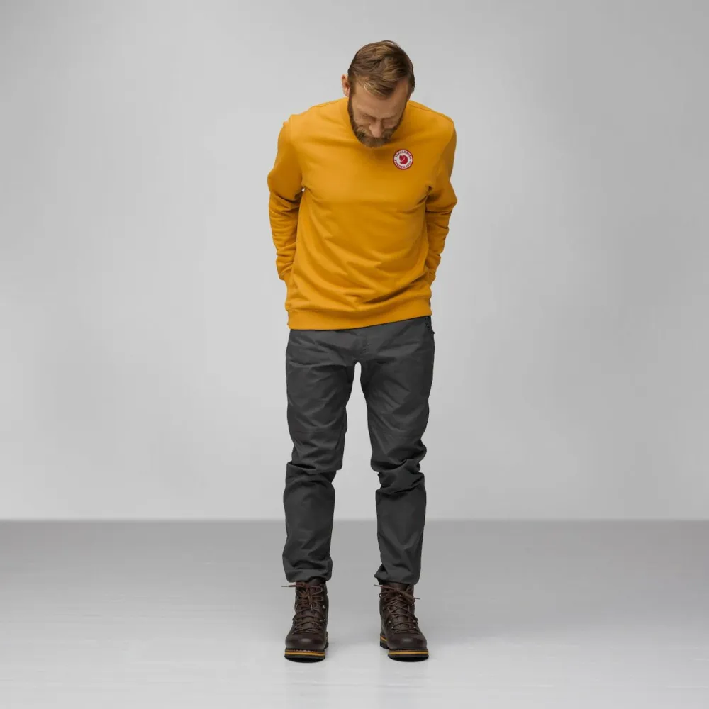 Der 1960 Logo Badge Sweater von Fjällräven ist ein absolutes Must-have für alle, die gleichermaßen Wert auf Stil und Nachhaltigkeit legen. Der Herrenpullover besteht zu 100 Prozent aus biologisch angebauter Baumwolle und zeichnet sich durch eine hochwertige Verarbeitung aus. Der Schnitt ist bequem und nicht zu eng. Rippbündchen an Ärmeln und Saum sorgen für den klassischen Sweatshirt-Look und ein Logo-Patch auf der Brust rundet das Oberteil ab. Ideal für Freizeit und Alltag.
