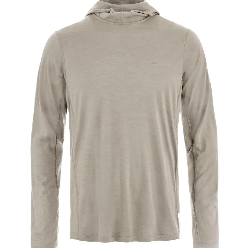 Das funktionelle Abisko Wool Hoodie Merinoshirt von Fjällräven besteht aus einer sportlichen Materialmischung mit 50% Merinowolle und 50% Polyester. Dadurch verbinden sich die temperaturregulierenden und geruchshemmenden Eigenschaften der Wolle mit schnellem Trocknen und Formstabilität. Das macht das Longsleeve zur idealen Wahl für sportliche Einsätze im Gelände.