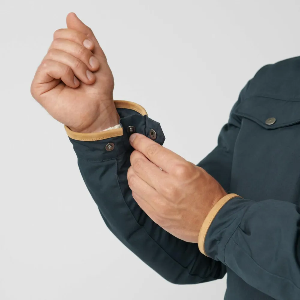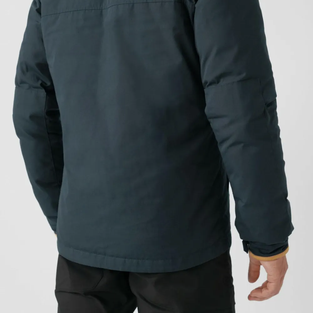 Für das Außenmaterial verwendet Fjällräven recyceltes Polyester und Bio-Baumwolle. Die Daunen sind zu 100 % rückverfolgbar und werden auf verantwortungsvolle Weise gewonnen. Außerdem verwendet Fjällräven eine PFC-freie Imprägnierung, da diese Chemikalien umwelt- und gesundheitsschädlich sind.