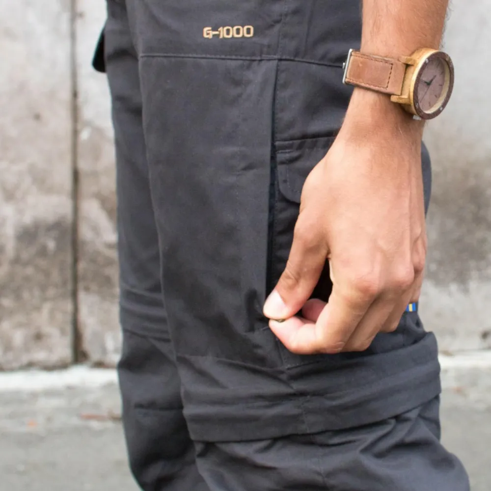 Langlebige Trekkinghose welche ein super Begleiter ist, egal auf welchem Weg – die Karl Pro Zip-Off Trousers von Fjällräven. Wie der Name schon verrät ist sie eine Zip-Off Hose und lässt sich dadurch schnell zur kurzen Hose umwandeln. Muss ein Fluss durchquert werden oder ist es schlicht zu warm, schnell die Beine abnehmen und das Abenteuer weiter genießen. Die normale Passform ist nicht zu eng und nicht zu weit, dadurch hat die Hose ein angenehmes Tragegefühl. Die Trekkinghose besteht aus dem von Fjällräven entwickelten Material G-1000 Silent. Das Mischgewebe aus Polyester und Baumwolle ist extrem robust, weich und atmungsaktiv. Die vorgeformten Knie und ein bewegungsfreundlicher Schnitt ermöglichen volle Flexibilität und schränken nicht ein. Viele verschiedene Taschen bieten genug Stauraum um die wichtigsten Dinge direkt dabei zu haben. Mit der Karl Pro Zip-Off Trousers kann jeder Weg und jedes Abenteuer gemeistert werden.