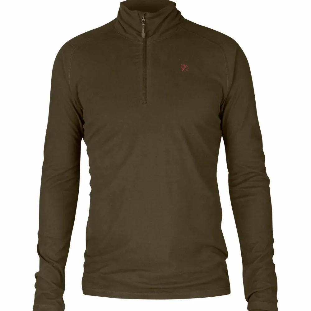 Angenehm weicher, vielseitiger und warmer Fleecepullover – der Pine Half Zip von Fjällräven. Das geschmeidige Mikrofleece bringt im Vergleich zum Gewicht eine super Wärmeleistung und ist sehr pflegeleicht. Dadurch eignet sich das Fleece optimal als Baselayer. Doch je nach Witterung kann der Fleecepullover jede Lage im Zwiebelschichtprinzip einnehmen. Die nach vorn versetzen Flatlock-Nähte verhindern unangenehme Druck- und Reibungsstellen. So kann der schwere Rucksack, bei jedem Abenteuer, ohne Beschwerden getragen werden. Der halblange Reißverschluss kann als Belüftung eingesetzt werden, hilft aber auch nach einem langen Tag beim Ausziehen. Rundum gelungen – das Pine Half Zip ist schön weich und gibt warm.