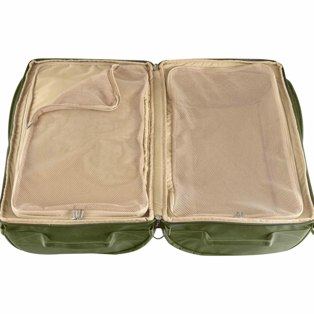 Reisetasche oder Rucksack? Eine Mischung aus beidem, das ist der Splitpack Large von Fjällräven! Der praktische Rucksack eignet sich perfekt zum Reisen und kann dank des praktischen Reißverschlusses wie ein Koffer geöffnet werden. So hat man eine gute Übersicht über den Inhalt und alle Dinge sind gut aufgeräumt und schnell griffbereit. Die beiden großen Hauptfächer werden durch ein Mesh-Einstze mit Reißverschluss geteilt. In den kleinen Innenfächer ist für Kleinkram Platz. In den Außentaschen mit Reißverschluss können Kleinigkeiten, die schnell griffbereit sein müssen untergebracht werden. Der Splitpack Large besteht aus robustem und umweltfreundlichem G-1000 Material und ist sehr abriebfest und wasserabweisend. Das Tragesystem mit gepolsterten Schulterriemen verteilt das Gewicht gut. Das gepolsterte Rückenteil sorgt für Tragekomfort. Ein weiteres Plus sind die praktischen Tragegriffe. Ob auf Reisen oder zum Training, im Splitpack Large von Fjällräven findet alles seinen Platz und ist übersichtlich und ordentlich aufgeräumt!