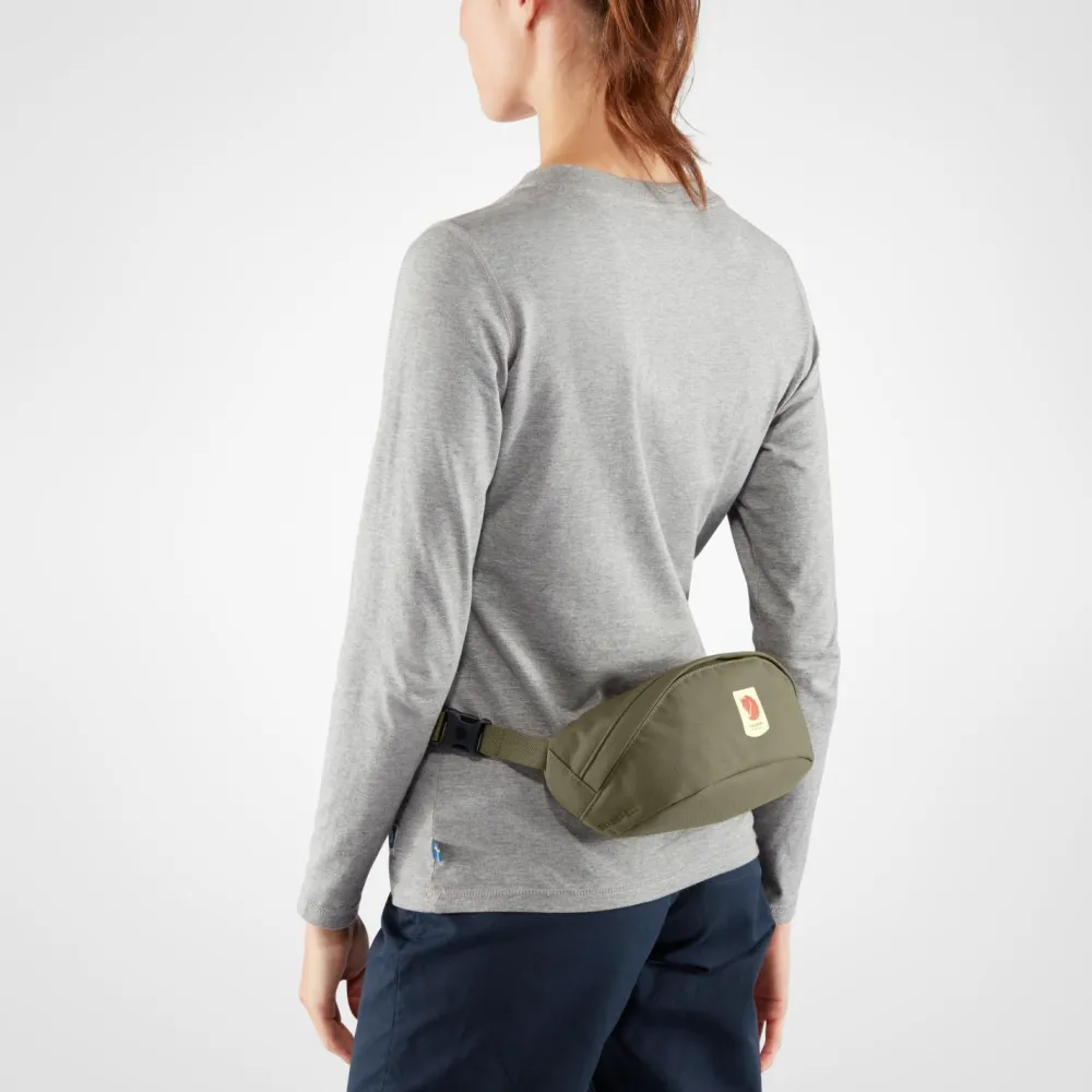 Mit einem Gewicht von nur 150 Gramm ist die Ulvö Hip Pack Medium Hüfttasche von Fjällräven eine ideale Wahl für leichte Wanderungen! Diese Tasche verwendet Fjällrävens wasserdichtes Bergshell Material aus recyceltem 400D Ripstop Nylon, wodurch ein hohes Maß an Widerstandsfähigkeit entsteht. Das Hauptfach bietet genügend Platz zum Aufbewahren von essentiellen Kleingegenständen wie Wanderkarten oder Smartphones. Auf der Rückseite befindet sich zusätzlich eine Sicherheitstasche, die zum Verstauen von Wertsachen dient. Die Ulvö Hip Pack Medium Hüfttasche von Fjällräven überzeugt durch ihr unkompliziertes Design und wird somit zu einem zuverlässigen Begleiter für Kurzausflüge in die Natur, der auch auf Reisen eine gute Figur macht!