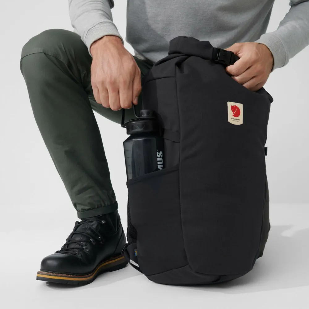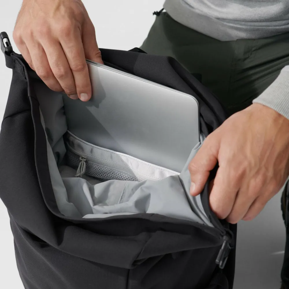 Der Ulvö Rolltop 30 Rucksack von Fjällräven kommt mit wasserdichten Materialien und einem coolen Äußeren daher und passt perfekt in einen stylischen Freizeit-Look. Damit der Rucksack auch bei einem langen Weg zur Uni oder ins Geschäft angenehm sitzt, sind die Schulterträger gepolstert. Auch schweißtreibende Bedingungen sind hier kein Problem, denn die Schulterträger sind atmungsaktiv und mit hochwertigen Mesh-Materialien ausgestattet. Der Rolltop-Verschluss ermöglicht einen einfachen Transport von Gegenständen und der Rucksack kann bis zum Maximum beladen werden, wenn beim Einkaufen mal wieder mehr als erwartet auf dem Kassenband lag. Seitliche Taschen beherbergen Kleinigkeiten sicher, sodass sie jederzeit griffbereit sind.