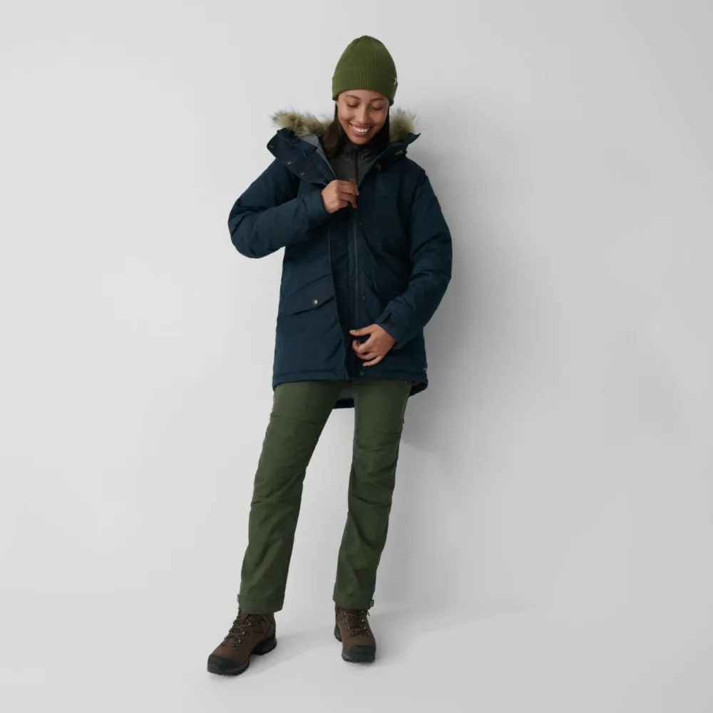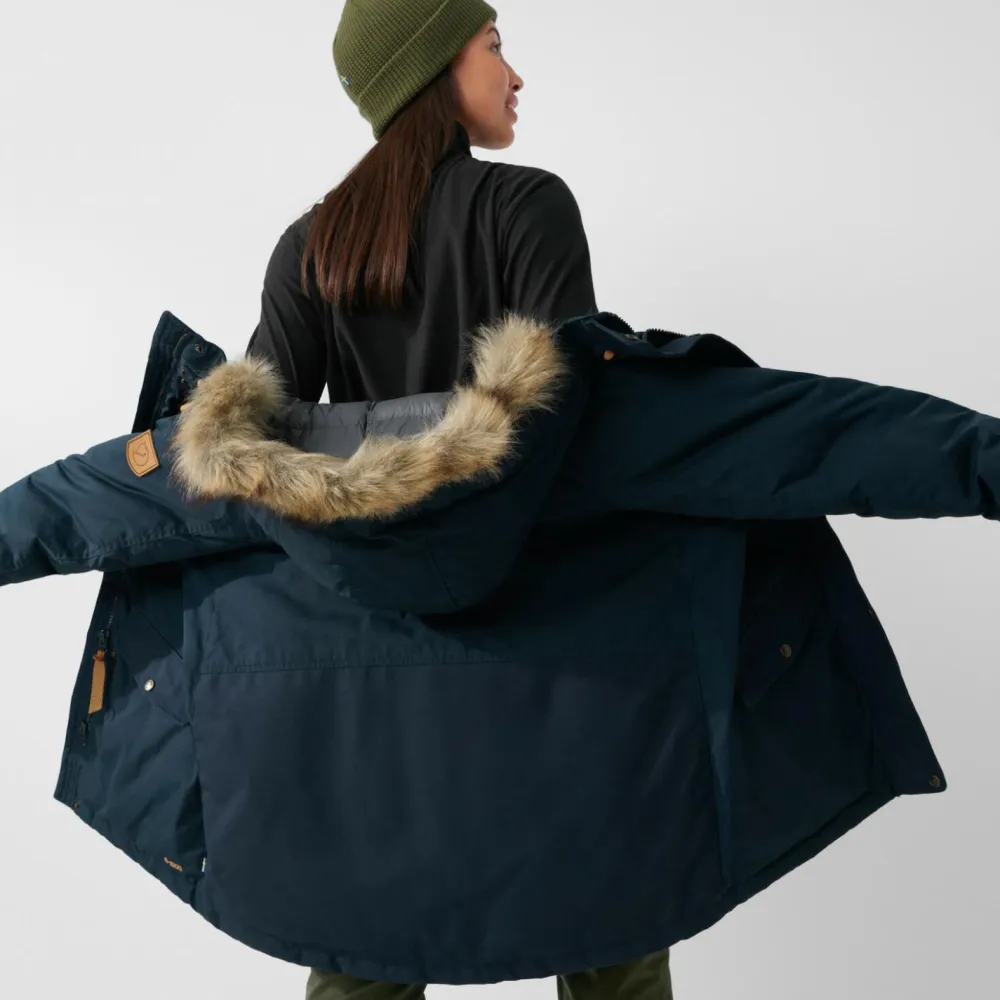 Der Women’s Singi Down Jacket Parka von Fjällräven ist für die kalten Tage gemacht. Seine hochwertigen Füllmaterialien sorgen für einen tollen Isolations-Effekt und speichern die Körperwärme gekonnt. So bleibt es Dir auch bei Minusgraden angenehm warm ums Herz. Falls die Finger einmal mehr frieren sollten, können diese auch in den flauschigen Taschen der Jacke aufgewärmt werden. Gegen Wind und Wetter haben die robusten Außenmaterialien der Jacke ein Ass im Ärmel. Diese Störenfriede haben keine Chance, sich einen Weg ins Innere der Jacke zu bahnen, dafür sorgen die bewährten G-1000 Materialien von Fjällräven. So bleibt es hier angenehm trocken und gemütlich. Für Kleinigkeiten wie das Smartphone und Co bieten die vielen Taschen verschiedene Aufbewahrungsorte.