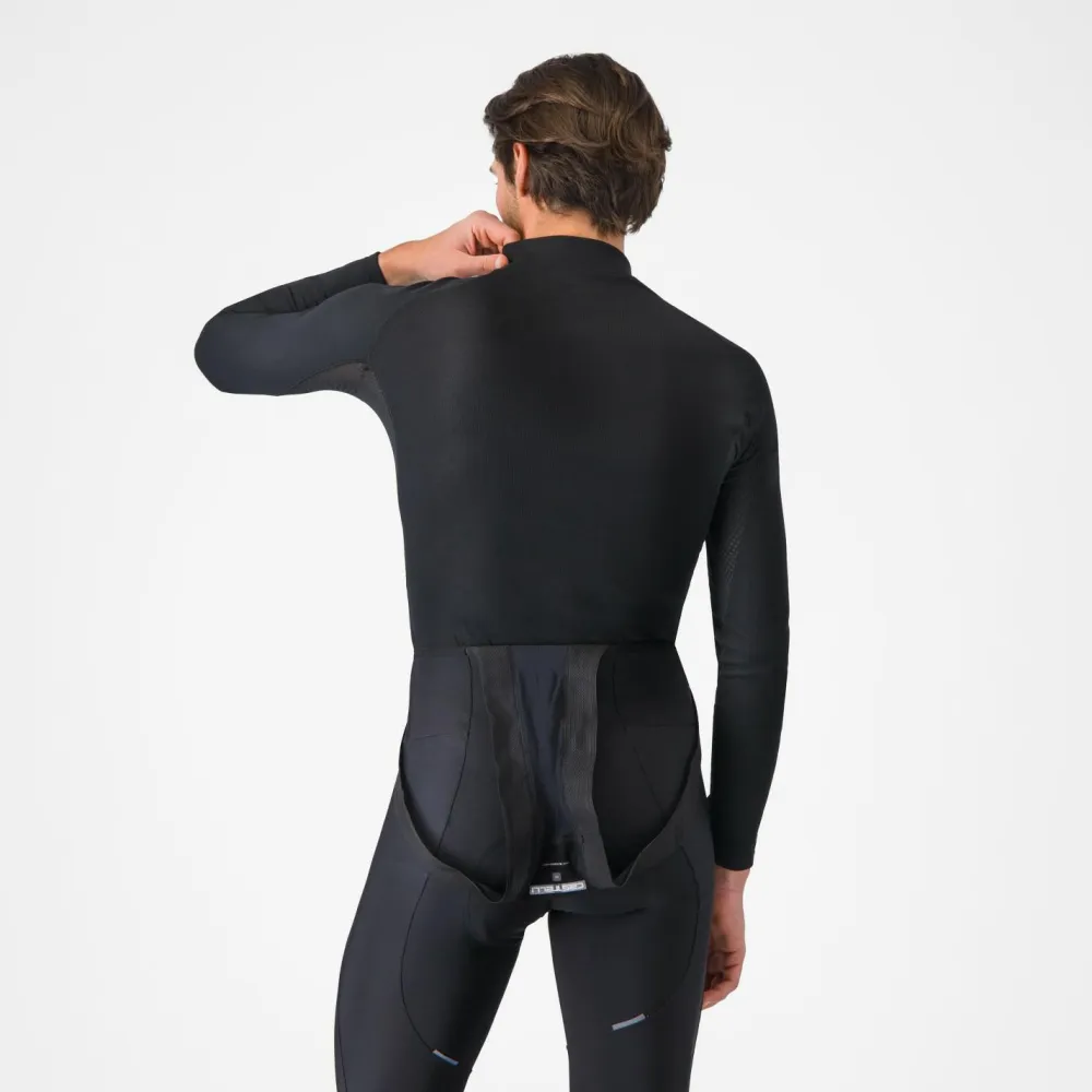 Ein zuverlässig isolierendes Baselayer bekommst Du mit dem Flanders 2 Long Sleeve von Castelli. Dieses Radunterhemd begleitet Dich bei Fahrten an kalten Tagen. Durch das elastische Material und den körpernahen Schnitt sitzt es dabei gut und engt Dich nicht ein. Zusätzlich ist das Material innen leicht angeraut und fühlt sich auch direkt auf der Haut weich an. Angenehm ist dabei auch der halbhohe Stehkragen.