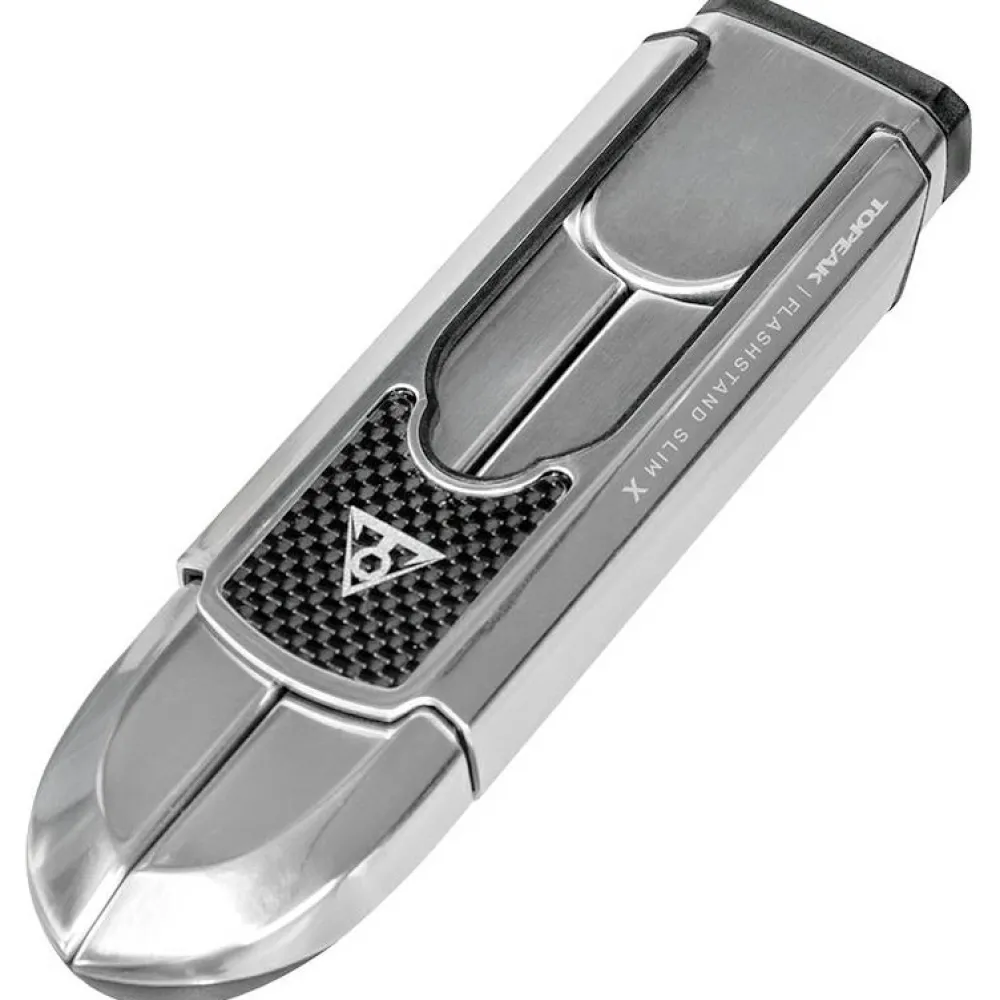 Der faltbare FlashStand Slim X von Topeak lässt sich im beiliegenden Aufbewahrungsbeutel komfortabel transportieren. Der Fahrradständer ist für Rennräder geeignet und kann zur Wartung ebenso genutzt werden wie zur Aufbewahrung Deines Rennrads. Das leichte und schicke Aluminium macht den Montageständer zu einem echten Hingucker.