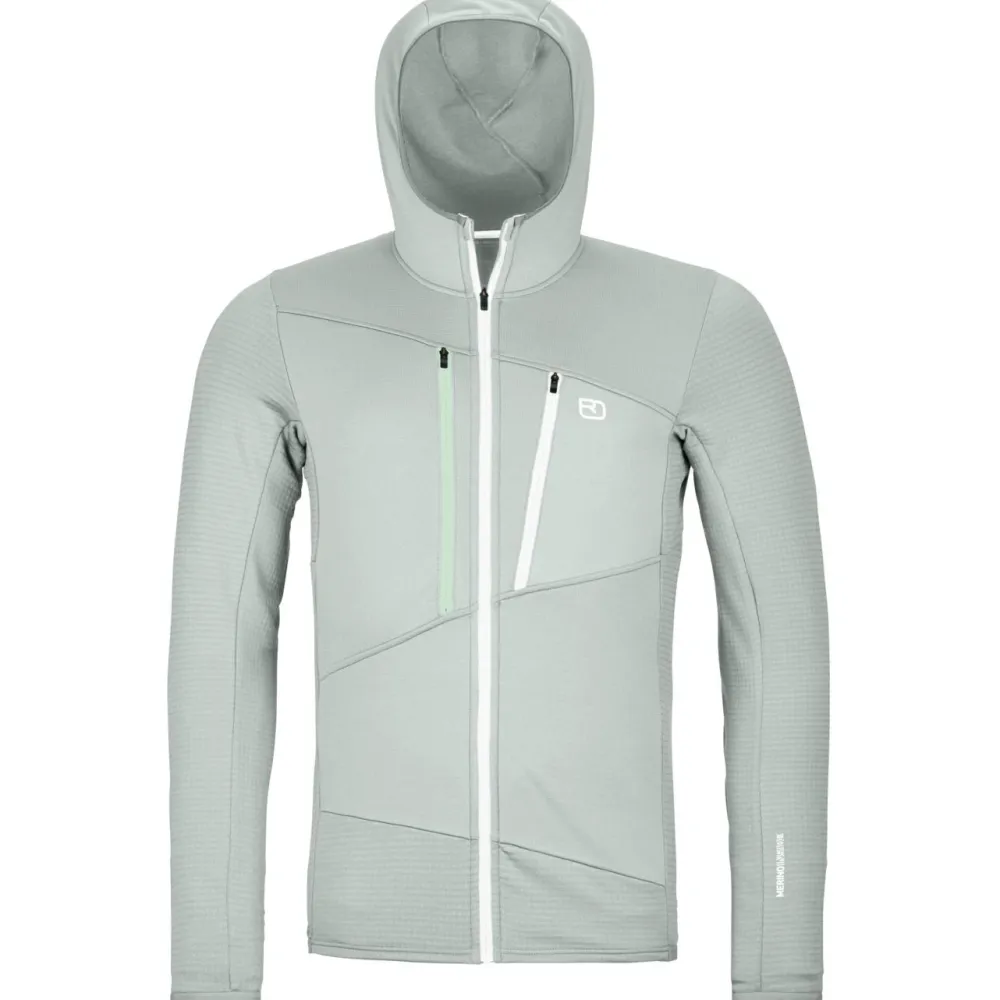 Niedrige Temperaturen sind auch für die wärmenden Woll-Fasern kein Problem. Von Natur aus sind sie fürs Wärmen zuständig und diese Fähigkeit macht sich Ortovox im Fleece Grid Hoody zunutze. Zudem punktet die Merinowolle mit geruchsneutralen und feuchtigkeitsregulierenden Merkmalen und liegt dabei angenehm und gemütlich auf der Haut.