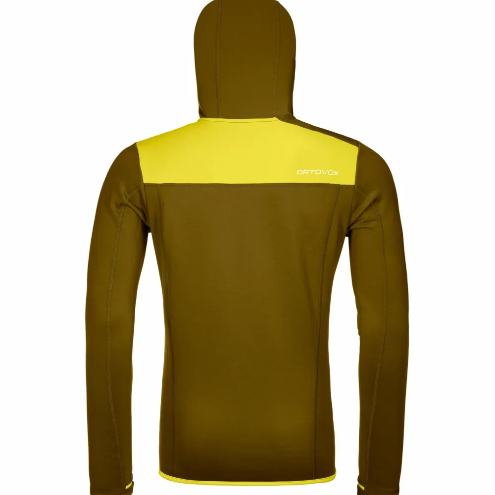 Durch das elastische Material eignet sich die vielseitige Fleece Hoody von Ortovox ideal zum Skifahren, für Skitouren und alpine Unternehmungen in den Bergen. Die flexible Kapuze passt sich beim Bergsport bequem an Deinen Kopf an und kann problemlos unter einem Kletter- oder Skihelm getragen werden. Der hoch geschnittene Kragen schützt gegen Auskühlung durch den kalten Wind.