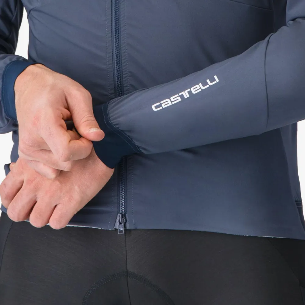 An kälteren Tagen auf dem Rad begleitet Dich die Fly Unlimited Jacket von Castelli. Diese Fahrradjacke eignet sich besonders gut fürs Gravelbike, kann aber beispielsweise auch beim Mountainbiken punkten. Das Material ist dabei sehr angenehm zu tragen und sorgt für eine gute Wärmeisolation. An der Vorderseite ist die Jacke zusätzlich winddicht, wodurch (Fahrt-)Wind zuverlässig abgehalten wird. Besonders ist aber auch die enganliegende Kapuze, die Dir bei Bedarf zusätzlichen Schutz vor Kälte, Wind und leichtem Niederschlag bietet.