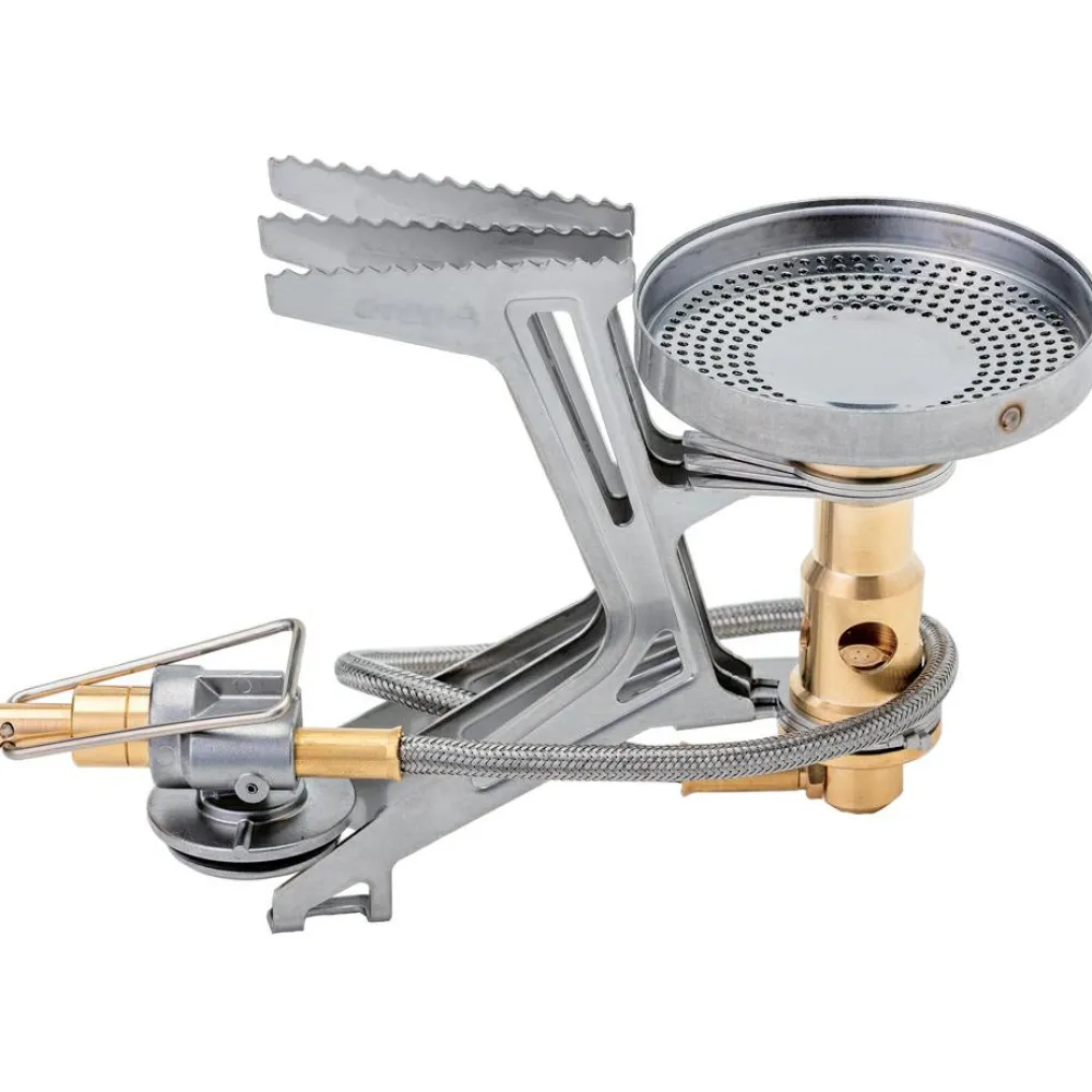 Der Fusion Trek ist ein kompakter und leichter Gaskocher vom japanischen Kocherspezialist Soto. Er ist minimalistisch und bringt zugleich starke Leistung mit. Der Brennerkopf besitzt eine konkave Oberfläche und schützt die Flamme damit vor seitlich einfallendem Wind. Der Brennerkopf ist so konstruiert, dass über 300 Teilflammen erzeugt werden. Des Weiteren sorgt der Micro Regulator für eine gleichmäßige Flamme auch wenn die Umgebungstemperatur etwas kälter ist und die Gaskartusche sich dadurch abkühlen kann. Das macht den Kocher besonders effizient. Die Topfstützen lassen sich einfach ausklappen und rasten sicher ein. Zudem dienen die Stützen gleichzeitig als drei Standbeine, um die Stabilität auch auf unwegsamem Gelände zu verbessern. Damit wird effizientes Kochen in den Bergen möglich!
