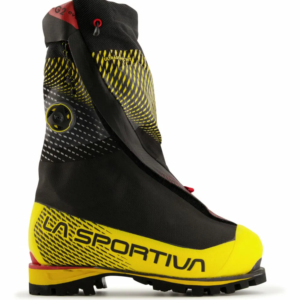 Der G2 Evo von La Sportiva ist für Expeditionen in die extremsten Gebiete dieser Erde entworfen worden. Der äußere Schuh ist aus vier Lagen aufgebaut und sorgt hierdurch für optimalen Schutz vor Wind, Kälte und Nässe: Die Kombination aus wasserabweisendem Polyamid, Wärme speicherndem Filz, isolierendem Polyethylen und einer wärme reflektierenden Aluminiumschicht sorgen für einen umfassenden Schutz vor den Elementen.