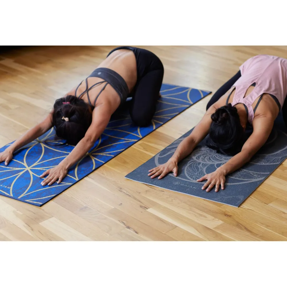 Die 6 mm Premium Metallic Yoga Mat von GAIAM ist die passende Wahl für alle Yoga Fans. Sie bietet ausreichend Halt und ist damit auch für das Üben von anspruchsvollen Yoga-Posen geeignet. Das großflächige Mandala Design fällt sofort ins Auge und dient als Ruhepol während der Ausübung von Yoga. Der Logoprint ist ein zusätzlicher Blickfang.
