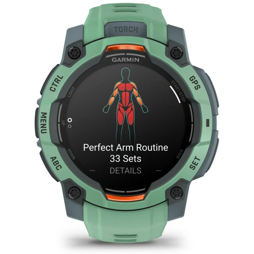Die Multisport-Smartwatch Instinct 3 Amoled 45 mm von Garmin ist Dein tougher Begleiter bei den unterschiedlichsten Aktivitäten. Ihr robustes Design mit metallverstärkter Lünette sowie die integrierte LED-Taschenlampe unterstützen Dich bei jedem Abenteuer und Du behälst auch im Dunkeln den Überblick.