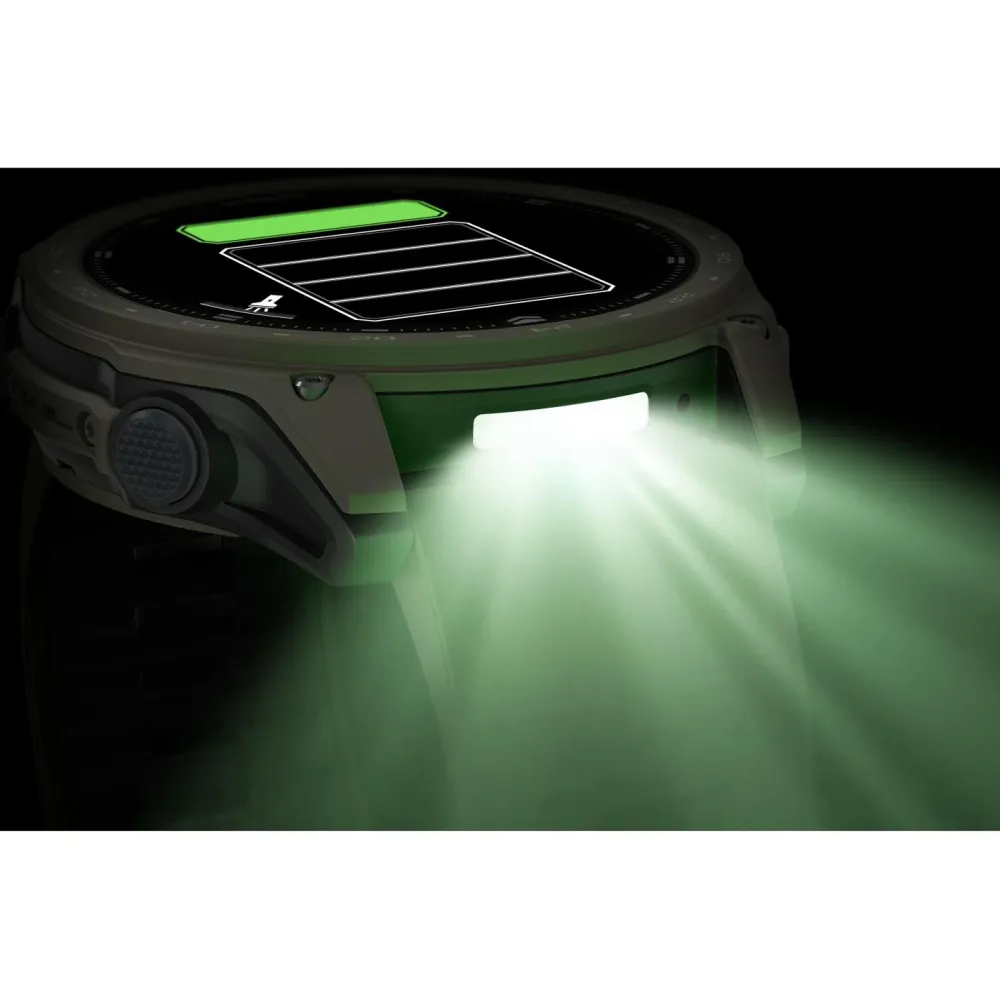 Das 51 mm Gehäuse der tactix 8 ist mit einer gehärteten Cerakote‑Keramikbeschichtung versehen, die nicht nur besonders kratz‑ und abriebfest ist, sondern der Uhr auch einen markanten, professionellen Look verleiht. Ergänzt wird die Konstruktion durch ein kratzfestes Saphirglas, eine geschützte Sensorfläche und wasserdichte, induktive Tasten.Mit einer Wasserdichtigkeit bis 10 ATM, Tauchzertifizierung bis 40 m Tiefe und einer Prüfung nach MIL‑STD‑810 ist die tactix 8 auf extreme Bedingungen ausgelegt – ob Hitze, Kälte, Nässe oder mechanische Belastung.