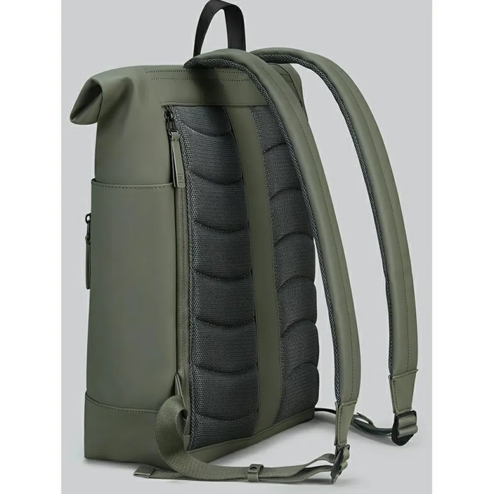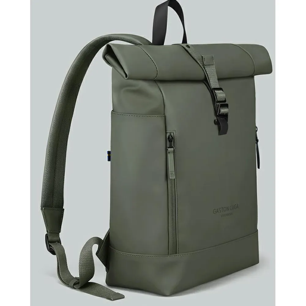 Der Rullen 20 von Gaston Luga ist ein sehr robuster und dennoch leichter Daypack für Reisen und Exkursionen aller Art. Er verbindet wasserdichtes PU und vollständig recyceltes Polyester zu einem funktionalen und komfortablen Materialmix. Der Tagesrucksack verfügt über einen charakteristischen Rollverschluss, mit dem sich Größe und Stauraum leicht und flexibel anpassen lassen. Das geräumige Hauptfach bietet Platz für alle Habseligkeiten, die über den Tag hinweg benötigt werden. Zur Ausstattung gehört auch ein gepolstertes Fach für Laptops bis zur Größe von 13 Zoll. Es wird ergänzt durch weitere Taschen, in denen all die kleineren Dinge Platz finden, die unterwegs schnell griffbereit sein sollen.