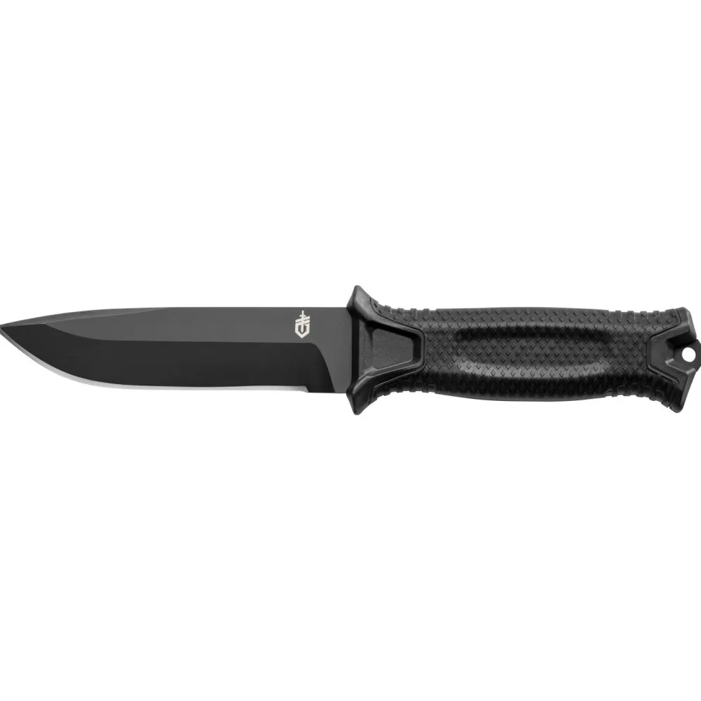 Das Messer Strongarm FE von Gerber ist für den robusten, taktischen Einsatz gedacht. Die Fulltang-Klinge ragt über das Griffende hinaus und kann als Schlagdorn eingesetzt werden. Als Material wurde beschichteter, rostfreier Stahl verarbeitet. Der geriffelte Kunststoffgriff gewährt auch in feuchterer Umgebung einen sicheren Halt. Die modulare Kunststoffscheide mit zusätzlichen Nylonriemen erlaubt unterschiedliche Tragemöglichkeiten, auch an Ausrüstung mit MOLLE-System.