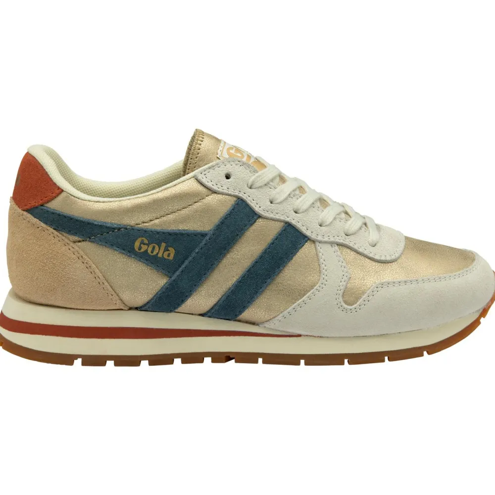 Die Women’s Daytona Blaze Sneaker von Gola sind ein echter Hingucker mit ihrem stilvollen und modernen Design. Die Kombination aus Leder und goldfarbenen Elementen verleiht ihnen einen besonderen Akzent. Diese knöchelfreien Sneaker sind mit Wildlederverstärkungen ausgestattet, die nicht nur optisch überzeugen, sondern auch für zusätzliche Stabilität sorgen.