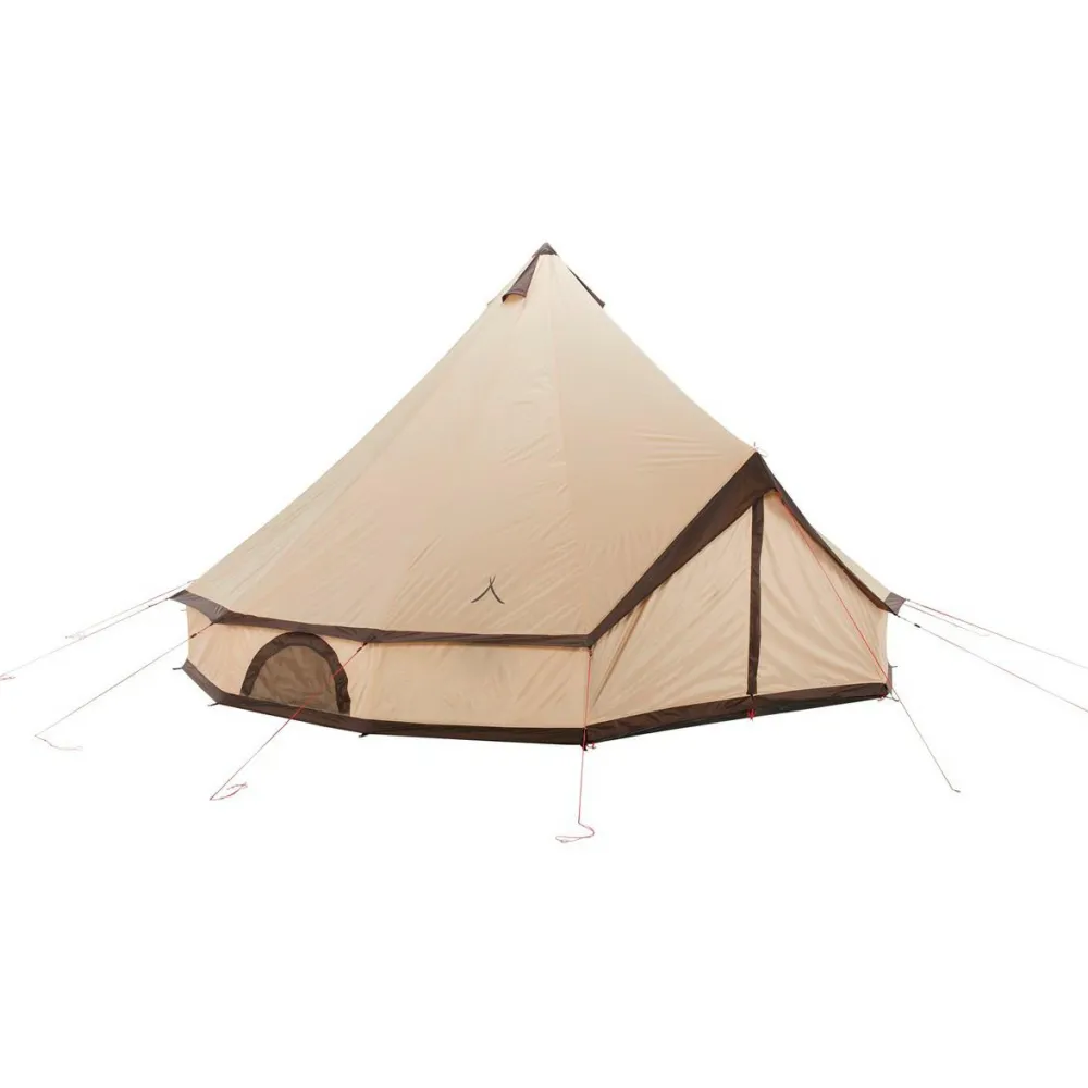 Ob Jugendzeltlager, Fußballmannschaft oder Reisegruppe – im Indiana 10 Gruppenzelt von Grand Canyon ist mehr als genügend Platz vorhanden. Dabei bietet das riesige Tipi nicht nur 10 Personen Platz zum Schlafen, Liegen und Sitzen, sondern hält auch noch genügend Platzreserven für die nötige Ausrüstung und eine Menge Equipment bereit. Mit 5 m Durchmesser und 3 m Höhe lässt es sich im großen Gruppenzelt bequem aufrecht laufen. Gleichzeitig sorgt das Indiana 10 für perfekten Schutz vor Wind und Regen und lässt sich mit nur 11 kg Gesamtgewicht gut transportieren. Mit umgerechnet 1,1 kg Gewicht pro Person ist das Riesenzelt mit seinen modernen Materialien ausgesprochen leicht.