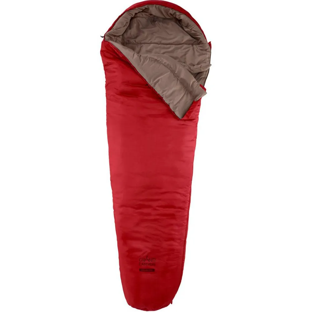 Für Camping vom Frühling bis in den Herbst eignet sich der Kansas 190 Kunstfaserschlafsack von Grand Canyon. Der Schlafsack ist in Mumienform geschnitten und liegt bei +5°C Komforttemperatur und einem Temperaturlimit um den Gefrierpunkt. Dank warmer Micro Polyester Hollow Faser schläft es sich aber auch bei eisigem Wetter sehr bequem im gefütterten Mumienschlafsack.