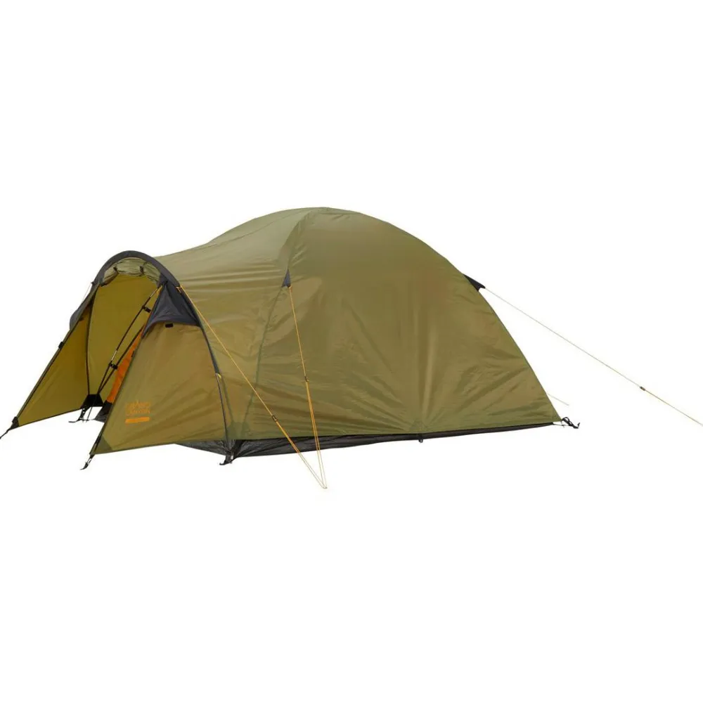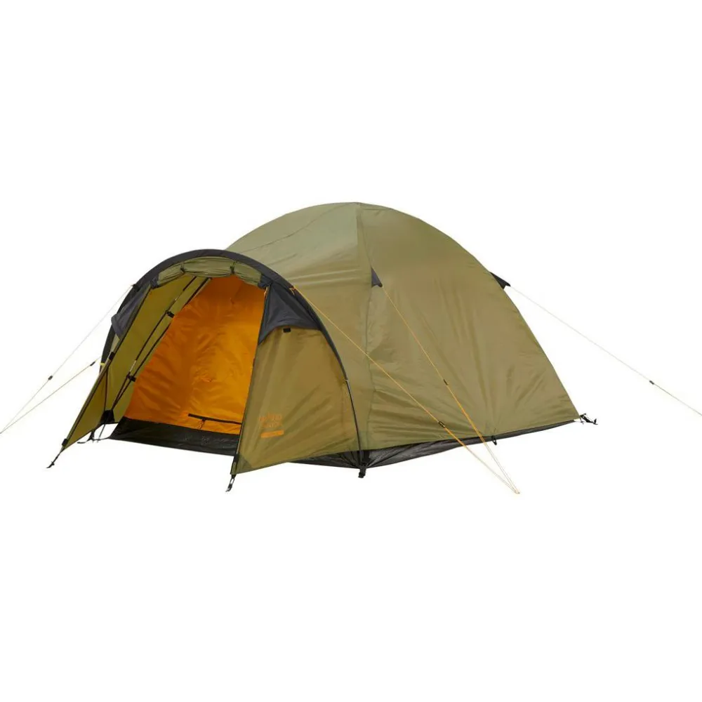 Das Topeka 2 2-Personen Zelt von Grand Canyon bietet auf seiner 210 x 160 cm großen Liegefläche bequem Platz zum Schlafen und Entspannen. Dabei sorgt die Außenhülle aus 68D 190T Polyester für sehr guten Wetterschutz und eine 3000 mm Wassersäule. Neben der Zeltplane ist auch der Zeltboden mit einer wasserdichten PU-Beschichtung versehen. Er widersteht sogar einer 4000 mm Wassersäule. Das Kuppelzelt ist so geschnitten, dass sich an den kopfseitigen Eingang ein 160 cm breiter Eingangsbereich angliedert in dem sich Rucksäcke und Wanderstiefel bequem verstauen lassen.
