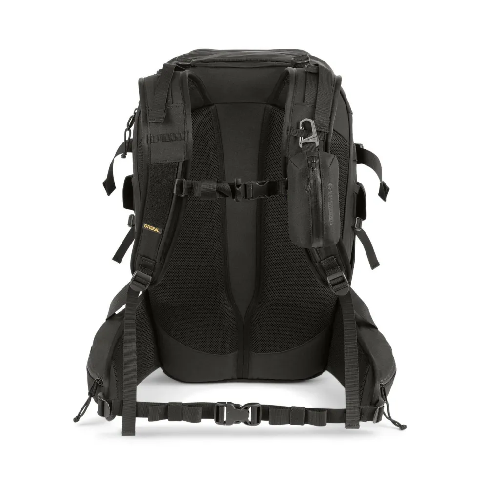 Was den Mission EXP Backpack besonders macht, ist sein Fokus auf Tragekomfort und sinnvolle Features. Die stark gepolsterten Hüftflossen mit Mesh-Belüftung entlasten den Rücken spürbar auf längeren Strecken. Die Schultergurte sind ergonomisch geformt und mit Klettflächen für zusätzliche G-Mod-Pouches (nicht im Lieferumfang enthalten) ausgestattet. Auch das Rückenpanel überzeugt mit atmungsaktivem Airmesh und konturierter Polsterung. Ein weiteres Highlight ist das seitliche Laptopfach mit Polsterung, was perfekt für alle ist, die ihr Gerät sicher transportieren wollen.