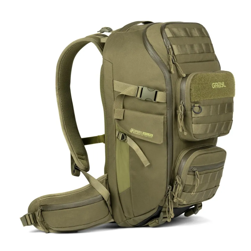 Der Rucksack besteht aus recycelten Materialien und ist mit wasserabweisenden YKK Aquaguard Reißverschlüssen ausgestattet. Das macht ihn nicht nur nachhaltig, sondern auch wetterfest. Die Expanse BottleDrop Taschen und das BottleLock System sorgen dafür, dass Trinkflaschen oder andere Ausrüstung sicher verstaut sind, selbst bei Bewegung. Dank des integrierten Trinkblasenfachs mit Schlauchdurchführung bist Du auch bei längeren Touren immer gut versorgt. Die MOLLE-kompatiblen Flächen bieten zusätzliche Möglichkeiten zur Erweiterung nach Deinem Bedarf.
