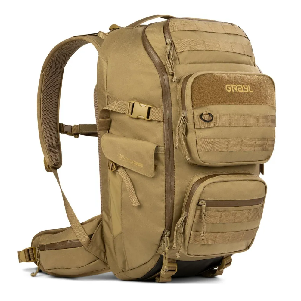 Der Mission EXP Backpack 35 von GRAYL ist ein Rucksack, der sich ganz klar an Outdoor-Enthusiasten richtet, die Wert auf Organisation, Modularität und Robustheit legen. Mit 17 verschiedenen Taschen bietet er Dir eine beeindruckende Struktur für Dein Equipment, egal ob Du auf einer mehrtägigen Trekkingtour oder einer anspruchsvollen Wanderung unterwegs bist. Die Kombination aus interner Rahmenkonstruktion und seitlichen Kompressionsriemen sorgt für eine stabile Lastverteilung und angenehmen Tragekomfort, selbst bei voller Beladung.