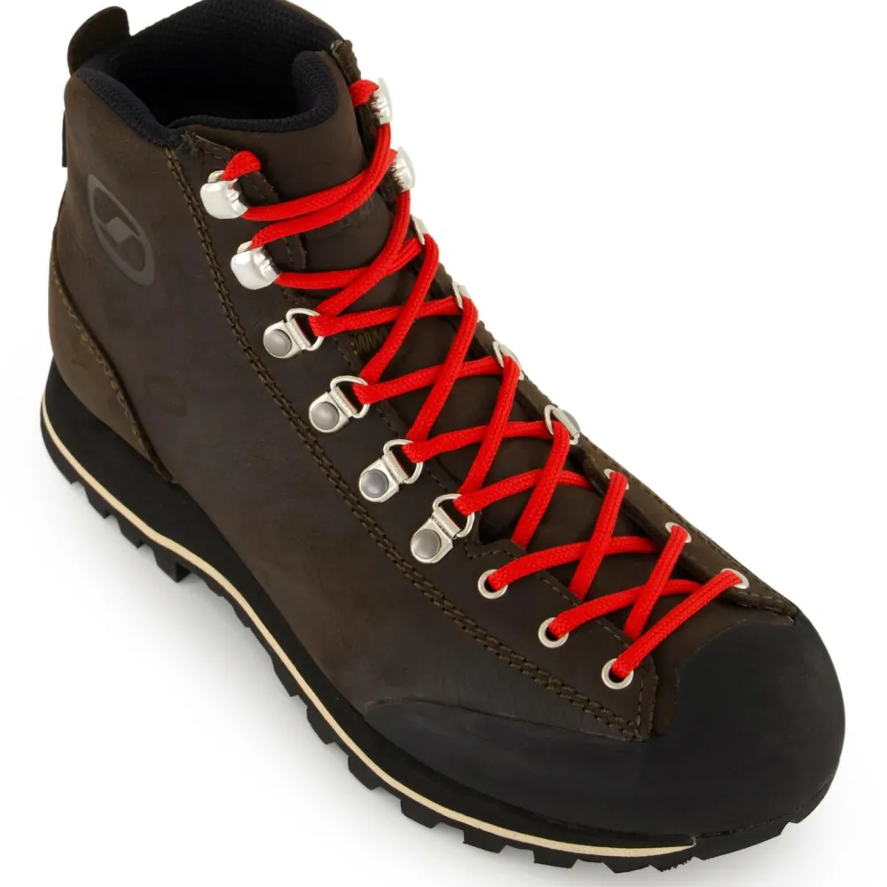 Einen coolen Schuh für nasse und kalte Tage ist der Guida City GTX von Scarpa. Der Vintage Look schaut in Kombination mit der erweiterten Schnürung lässig aus. Diese lässt den Schuh individuell an den Fuß anpassen und wird von stabilen Metallösen fixiert. Je nach Outfit können entweder rote oder Ton in Ton farbene Schnürsenkel getragen werden.