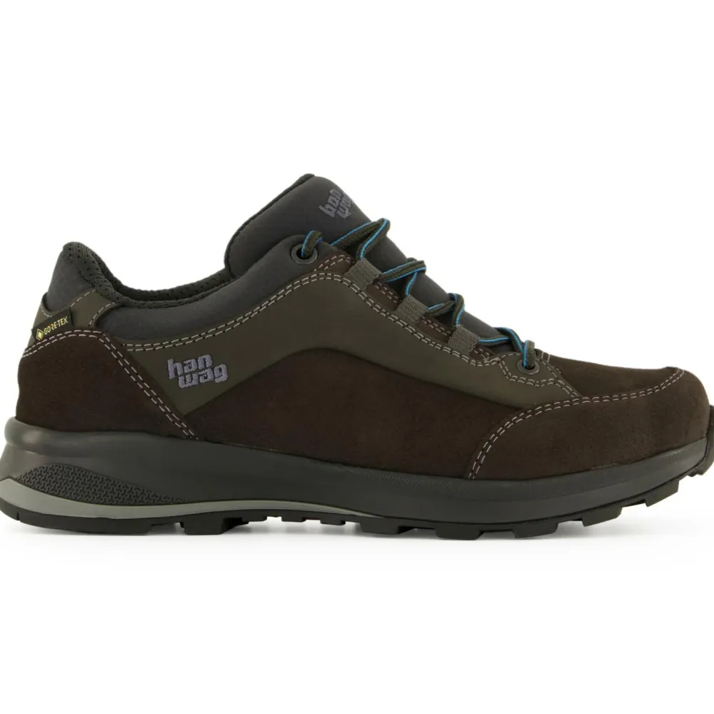 Der Banks Low Lady GTX von Hanwag ist ein niedriger Multisportschuh für Frauen, der durch einen hohen Tragekomfort punktet! Er eignet sich nicht nur für den Alltag und für die Freizeit, sondern auch zum Reisen und für leichte Wanderungen im Flachland. Sein Obermaterial aus Leder und Synthetik ist nicht nur hochwertig und damit gut aussehend, sondern auch besonders abriebfest für eine lange Lebensdauer. Das GORE-TEX Innenmaterial sorgt darüber hinaus für wasserdichte sowie atmungsaktive Eigenschaften. Somit genießt Du stets einen trockenen Tragekomfort – selbst bei Regen. Apropos Tragekomfort: Die Kombination aus verstärktem PU-Schaumkeil und hochwertiger Einlegesohle macht das Laufen in dem Schuh super angenehm.