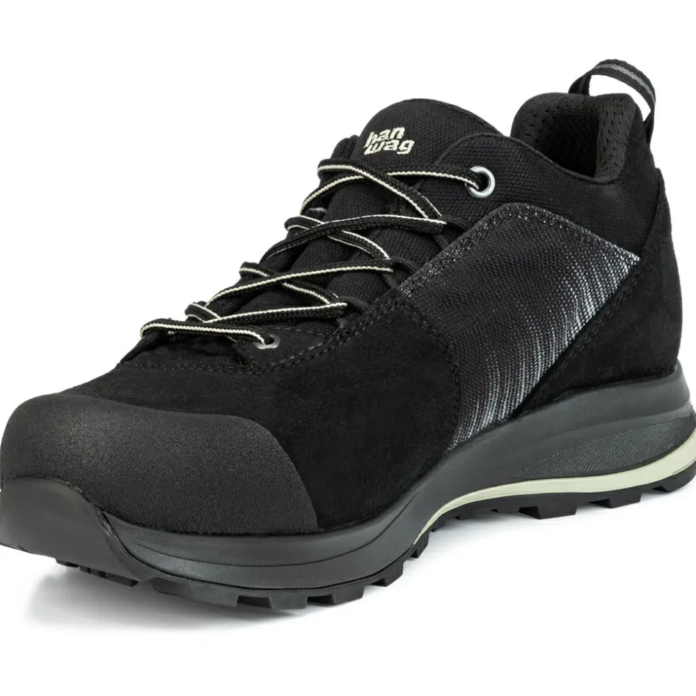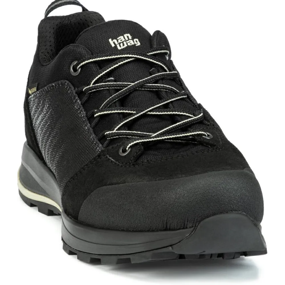 Mit dem Klarsby Low Bunion GTX von den bayerischen Wanderschuh-Spezialisten von Hanwag bist Du bestens ausgestattet – vor allem, wenn Deine Füße im Vorderfußbereich etwas mehr Platz benötigen oder Du sogar eine Fehlstellung der Großzehe (Hallux Valgus) hast. Und genau in dem Fall sind die Modelle der „Bunion“-Reihe von Hanwag wirklich perfekt. Denn die Zehenbox ist etwas breiter gestaltet und bietet daher mehr Platz und größeren Komfort. Im Zuge dessen wurde auch die Sohle der Schuhe angepasst und verfügt über eine verbreiterte Auftrittsfläche sowie eine PU-Zwischensohle mit hervorragender Dämpfung. Durch die Verwendung einer bewährten GORE-TEX-Membran ist das Obermaterial wasser- und winddicht und sorgt so für optimalen Wetterschutz und besten Wanderspaß bei allen Bedingungen!