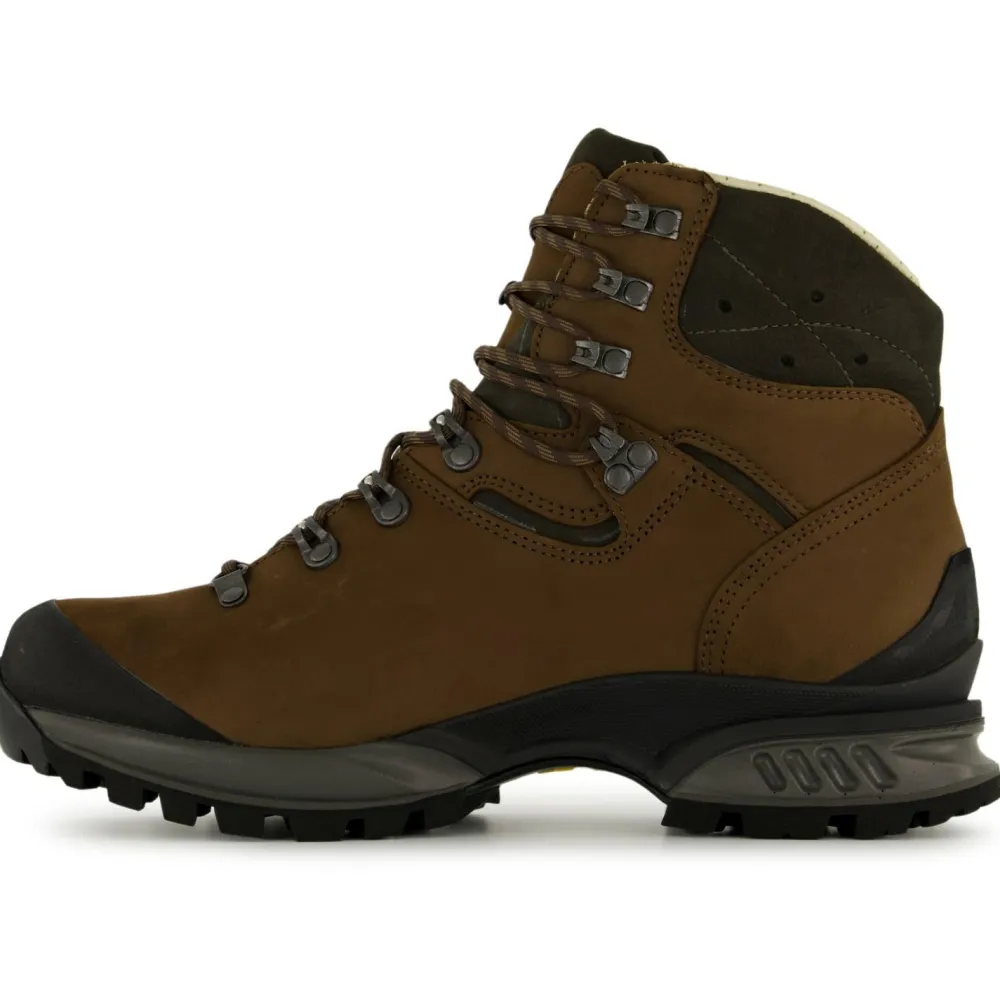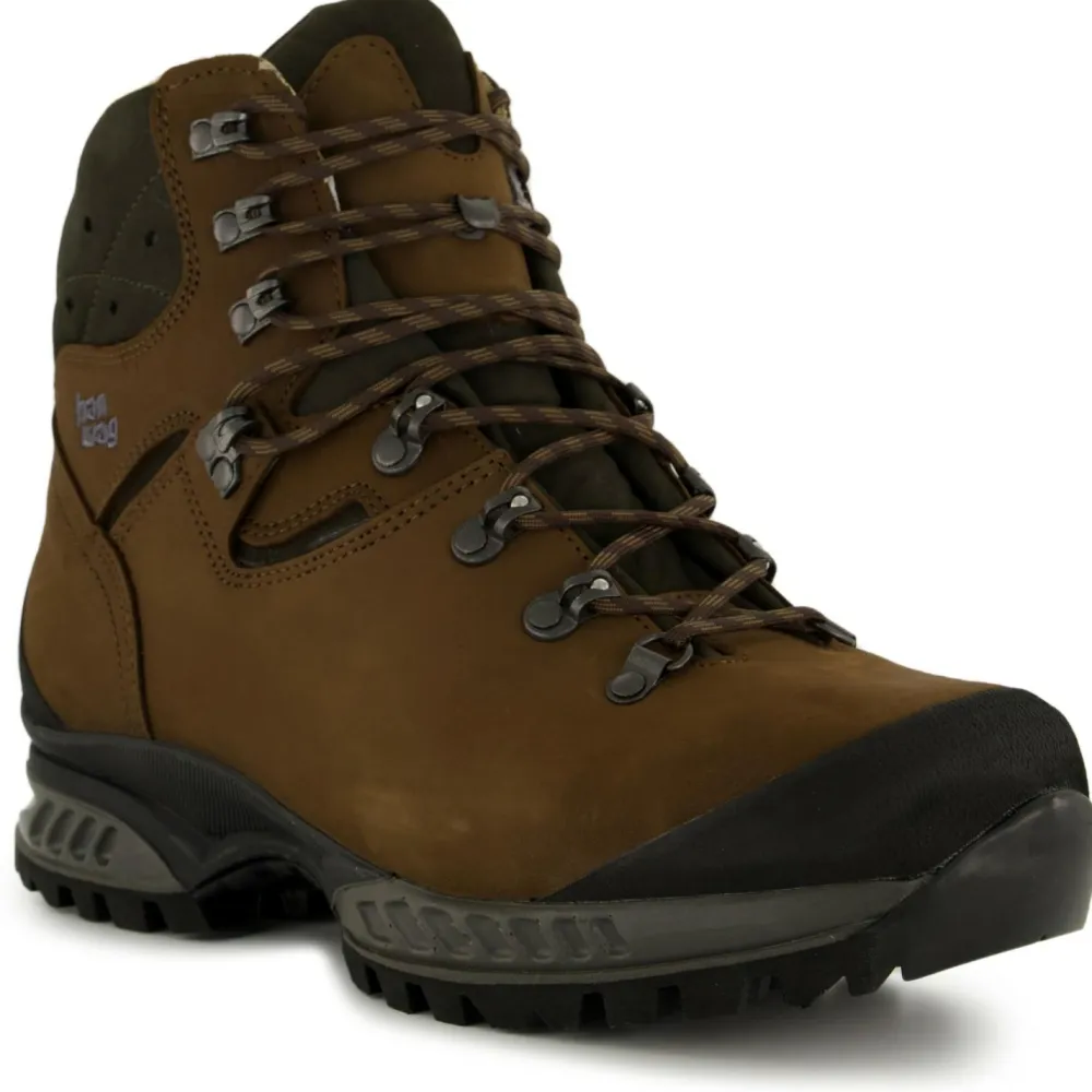 Tragekomfort setzt eine perfekte Passform voraus: Diese wird erreicht durch die bewährten Leisten von Hanwag, die Zwei-Zonenschnürung mit Click Clamps und die Zungenhaken, die das Verrutschen der Zunge verhindern.