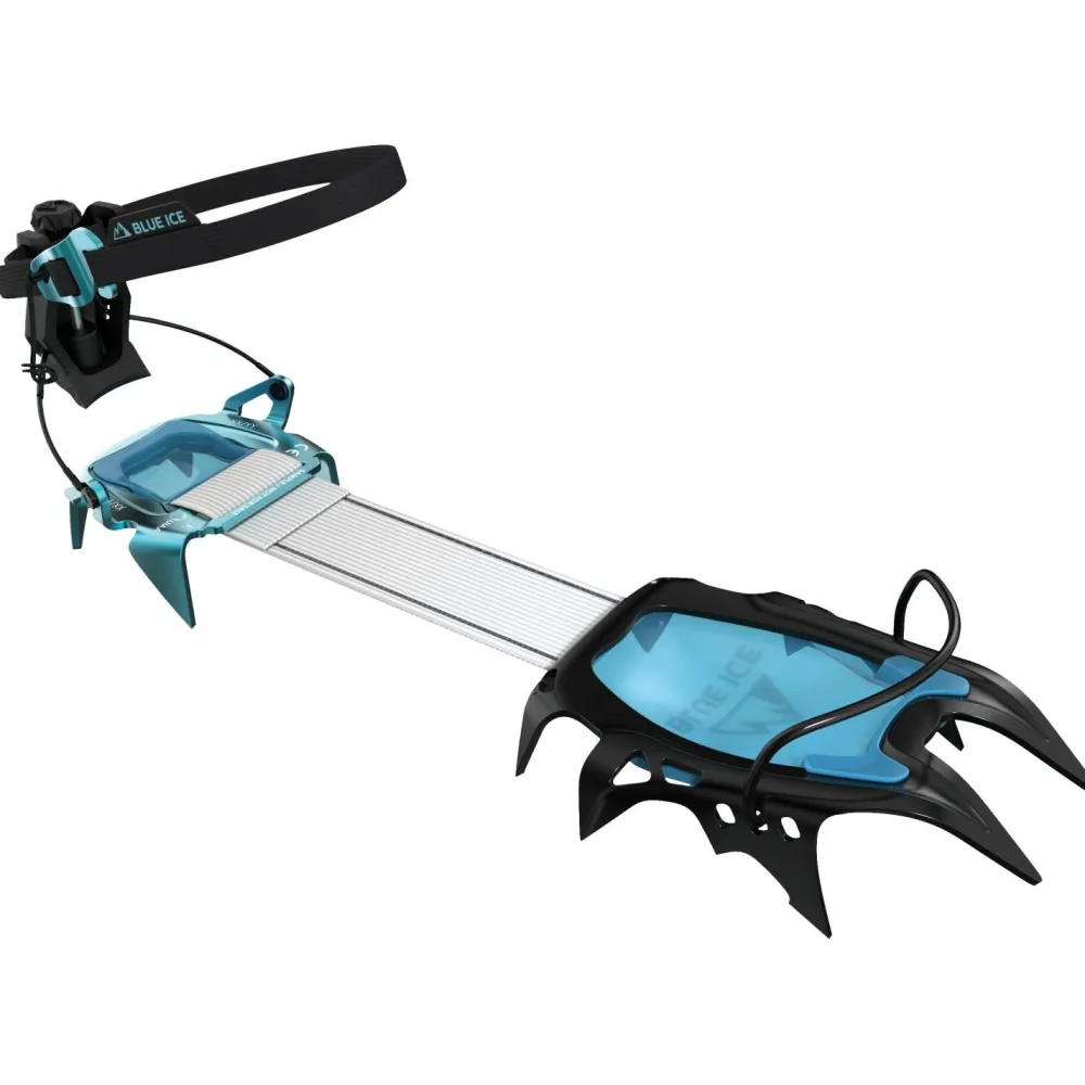 Das Harfang Alpine Hybrid von Blue Ice ist ein Steigeisen mit einem Chrom-Molybdän-Zehenteil und einem leichten Fersenteil aus Aluminium, das sich für maximale Flexibilität in ein Steigeisen mit Körbchenbindung vorne umbauen lässt. Es eignet sich daher sowohl für voll als auch für bedingt steigeisenfeste Schuhe und überzeugt dank der Materialkombination aus stabilem Stahl und leichtem Aluminium auf klassischen Hochtouren, bei denen Gewicht ein entscheidender Faktor ist.