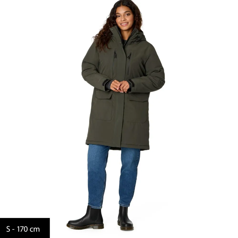 Beim Women’s SylvaHe. Parka wurde an alles gedacht: Der durchgehende 2-Wege-Front-Reißverschluss mit Windabdeckleiste schützt Dich vor kaltem Wind und Kälte. Mit verstellbarer Kapuze und elastischen Innenbündchen passt sich der Parka perfekt an und hält auch bei starkem Wind das Wetter vor Dir fern. Mit zahlreichen Taschen, darunter zwei RV-Brusttaschen und eine Innentasche, hast Du ausreichend Platz für Deine Essentials, sodass Du alles Wichtige immer griffbereit hast. Die vorgeformten Ärmel und der verlängerte Rücken sorgen zudem für optimale Bewegungsfreiheit und einen perfekten Sitz – ganz egal, wie aktiv Du bist.