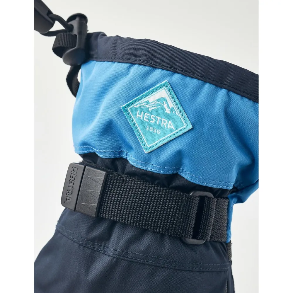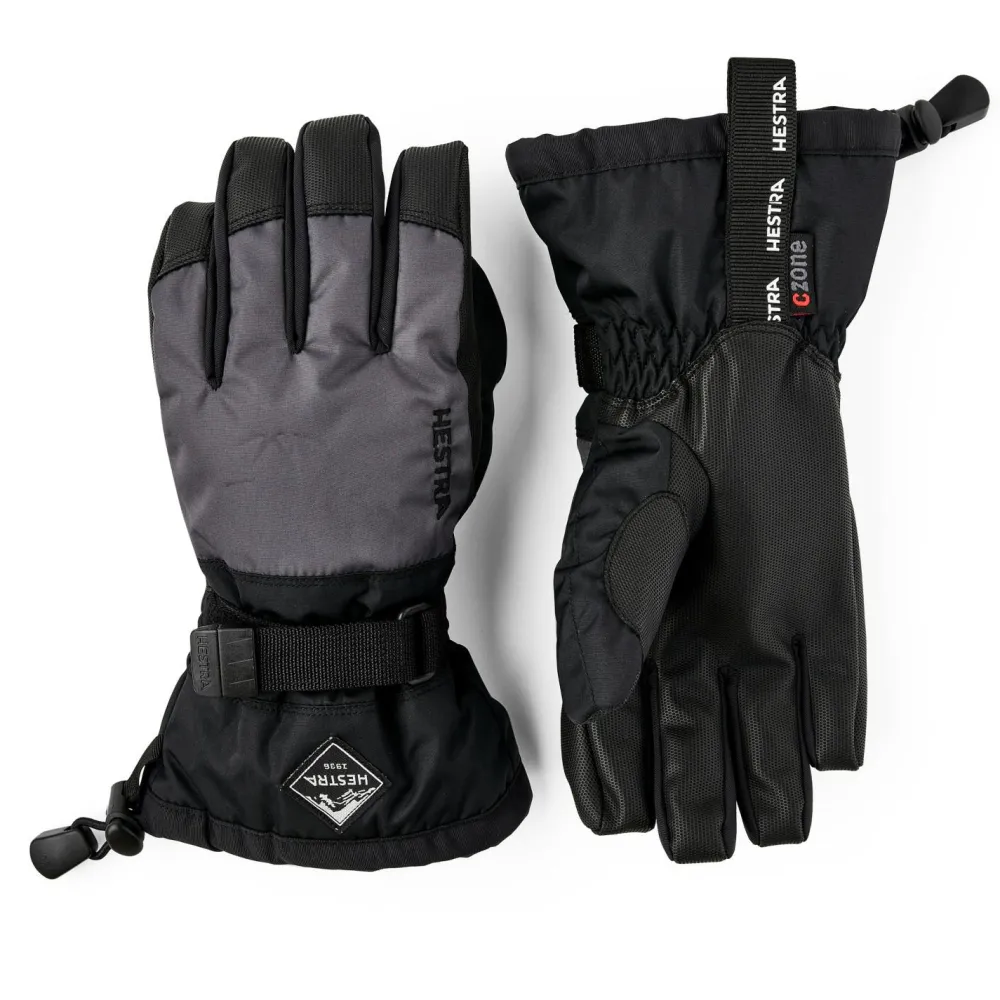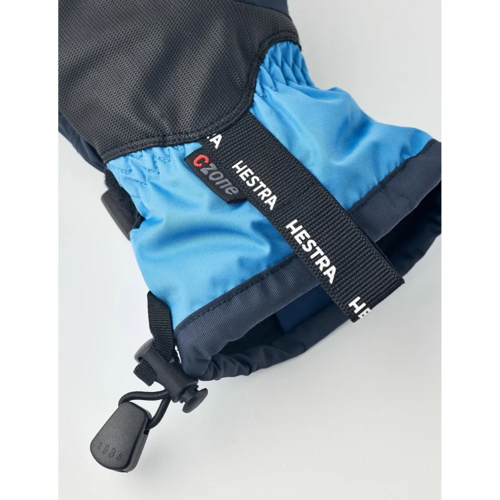 Für Skikurs, Schneemannbauen und Schlittenfahren: der Hestra Gauntlet Czone Junior 5 Finger!Diese Handschuhe bestehen aus einem wasserdichten Membrangewebe und sind sehr robust und warm isoliert. Durch das zusätzliche Fleecefutter schmiegen sie sich angenehm weich an die Kinderhände. Zudem gibt es Verstärkungen mit viel Grip an der Handfläche und eine schützende Polsterung am Handrücken.Damit die Handschuhe sich gut anpassen lassen und kein Schnee oder unangenehme Kälte nach innen kommen, gibt es einen Klett am Handgelenk und einen breiten Saum mit Kordelzug. Die Bedienung ist kinderfreundlich.Die spezielle Vorformung (Wolf Paw) der Finger bietet den Kleinen einen super Komfort beim Fassen und am vielleicht erfreulichsten ist, dass sich die Hestra Gauntlet Czone Junior 5 Finger Handschuhe maschinell waschen lassen!