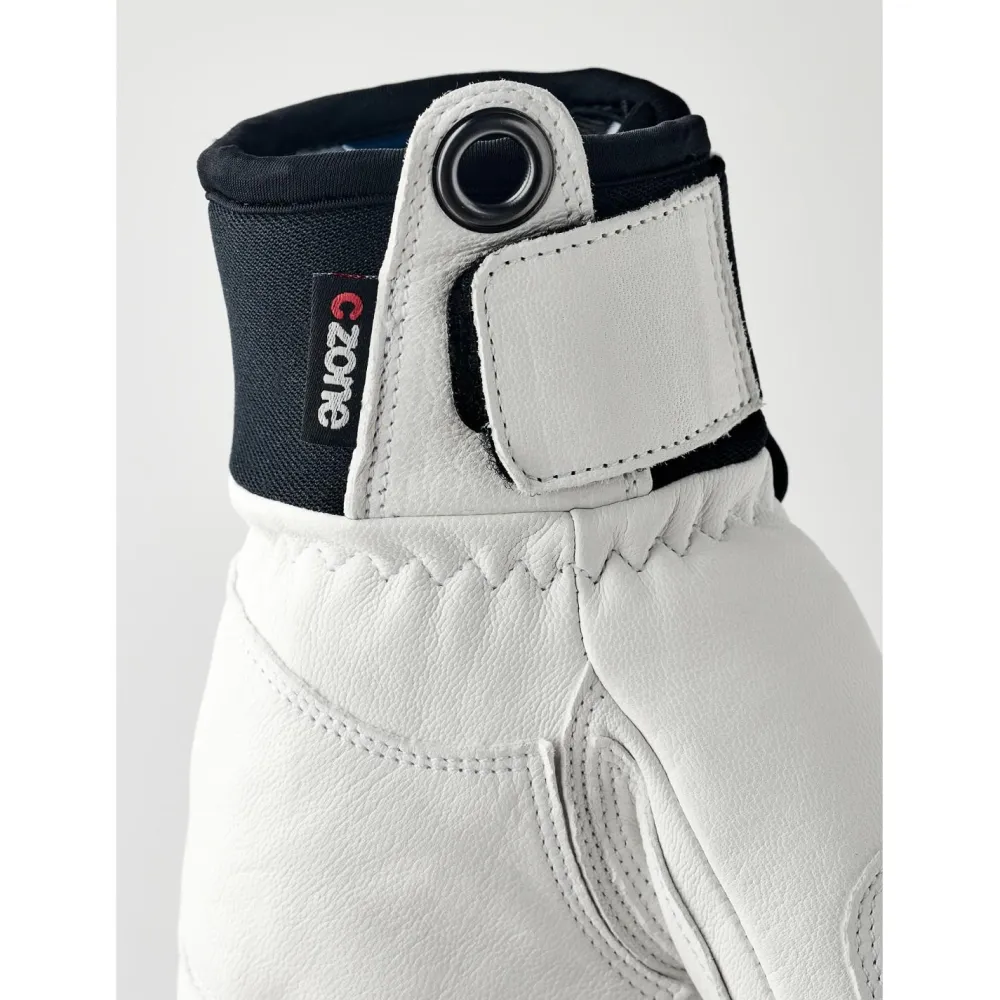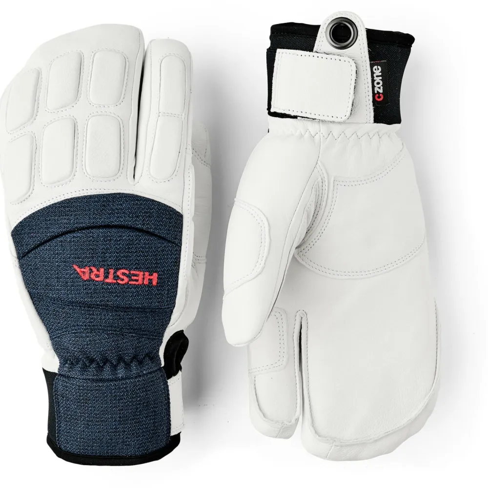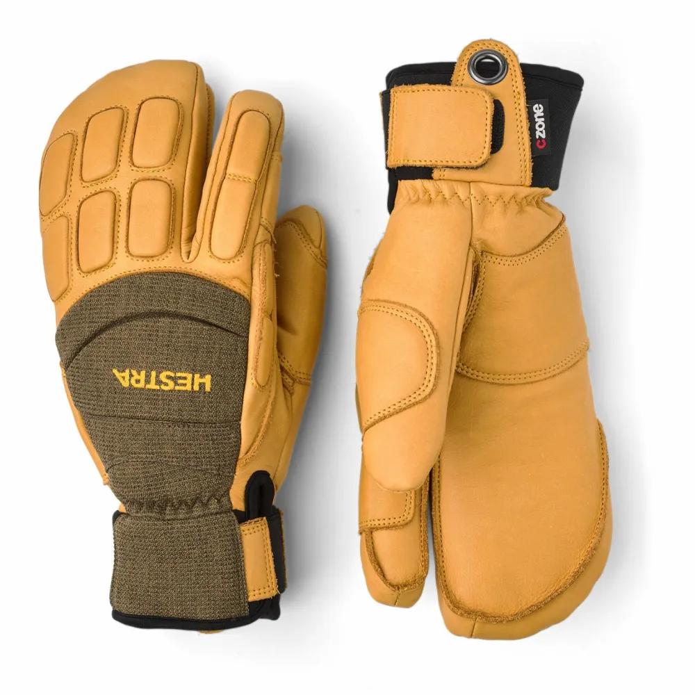 Die Vertical Cut Czone 3 Finger Handschuhe von Hestra sind aus hochwertigem und wetterfest imprägniertem Leder gefertigt. Um besten Schutz vor Schnee, Nässe und Wind zu gewährleisten, hat Hestra sie zudem mit einer wasserdichten und zugleich atmungsaktiven CZone Membran ausgerüstet. Durch die 3-Finger-Konstruktion sind die Handschuhe gleichermaßen warm, komfortabel und bewegungsfreundlich, denn mit Daumen und Zeigefinger lässt es sich präzise und gefühlvoll greifen. Dank der wärmenden Isolationsschicht aus wattierter G-Loft Kunstfaser kommen die Vertical Cut Czone 3 Finger Handschuhe auch an eisigen Tagen zum Einsatz und halten Hände und Finger warm. Mit der breiten Manschette und ihrem Klettverschluss verhindern die Hestra Wintersporthandschuhe zudem, dass Schnee, Nässe und Kälte ins Innere der 3-Finger Handschuhe gelangen können.