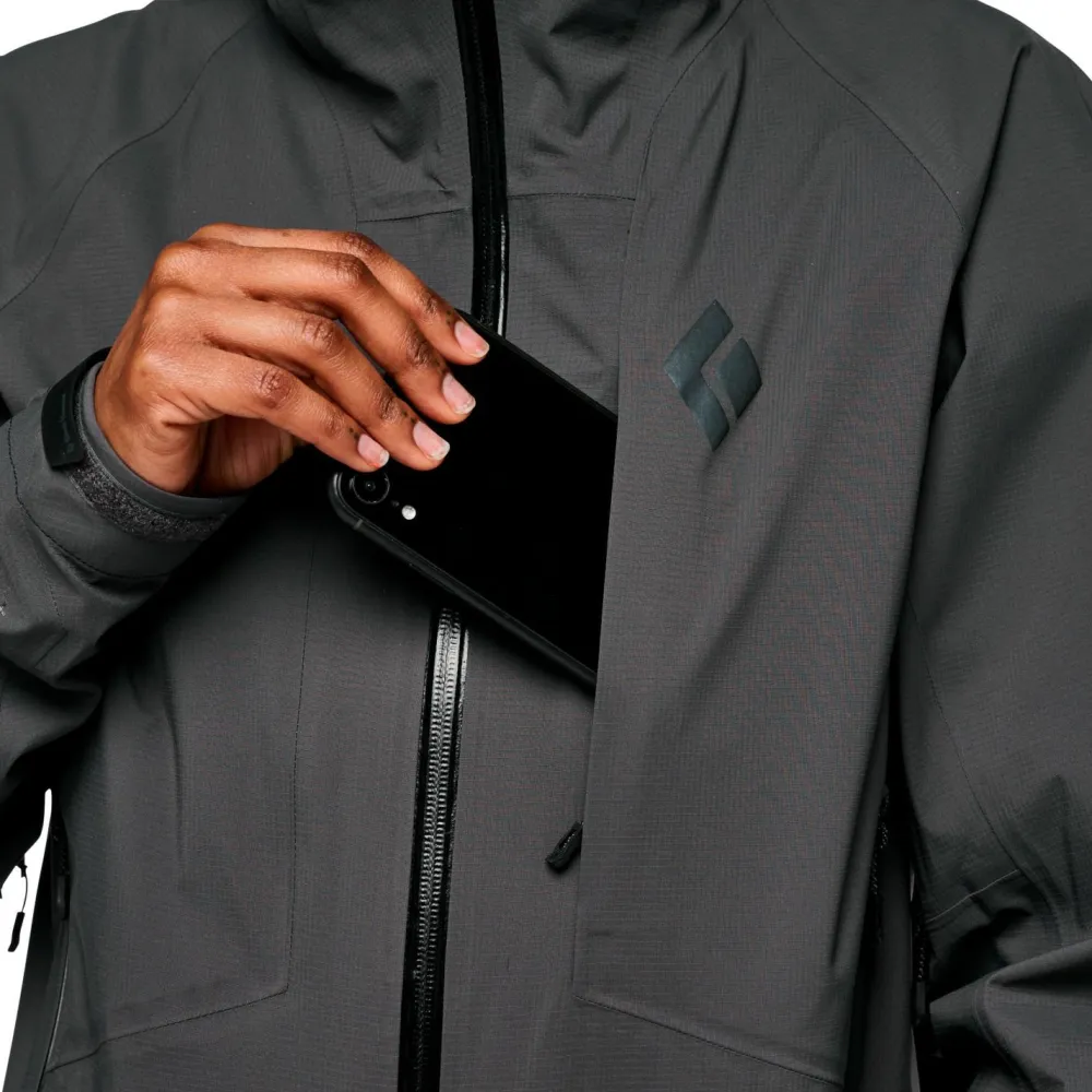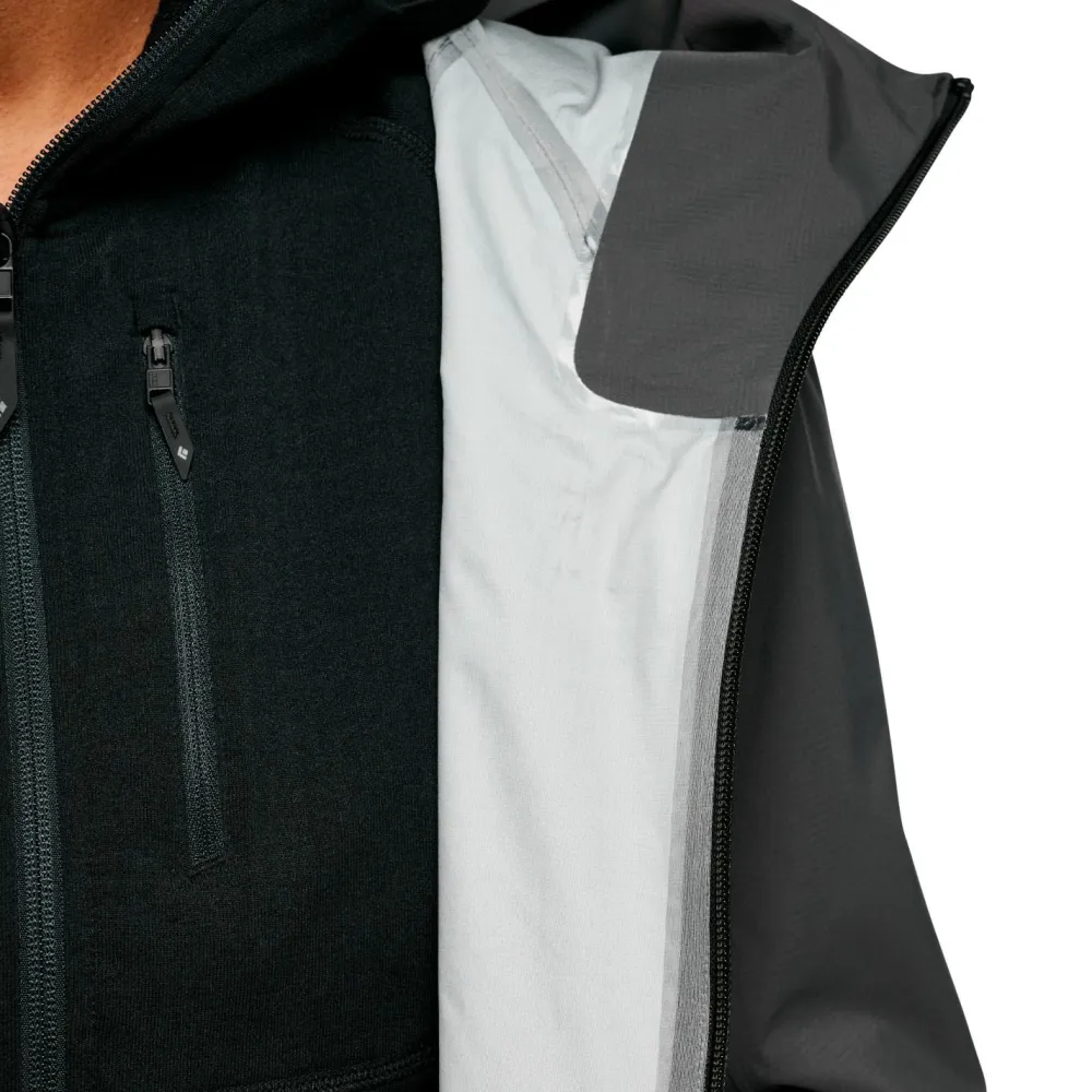 Die Highline Stretch Shell Regenjacke von Black Diamond ist eine vielseitige Jacke, die Dich bei den verschiedensten Abenteuern in den Bergen unterstützt. Wenn schlechtes Wetter anrollt, punktet sie mit ihren wasser- und winddichten Eigenschaften und Du kommst bequem und trocken ans Ziel. Die Highline wurde für schnelle Touren mit wenig Ausrüstung konzipiert und verfügt über eine verstellbare Kapuze, Nähte im Schulterbereich für mehr Bewegungsfreiheit und einen tieferen Halsausschnitt, um die Bewegungsfreiheit mit einem Rucksack zu verbessern. Zwei Brusttaschen,zwei Handeinschubtaschen, ein Innenfach und Reißverschlüsse unter den Armen runden die Funktionspalette dieser Alpinjacke gekonnt ab.