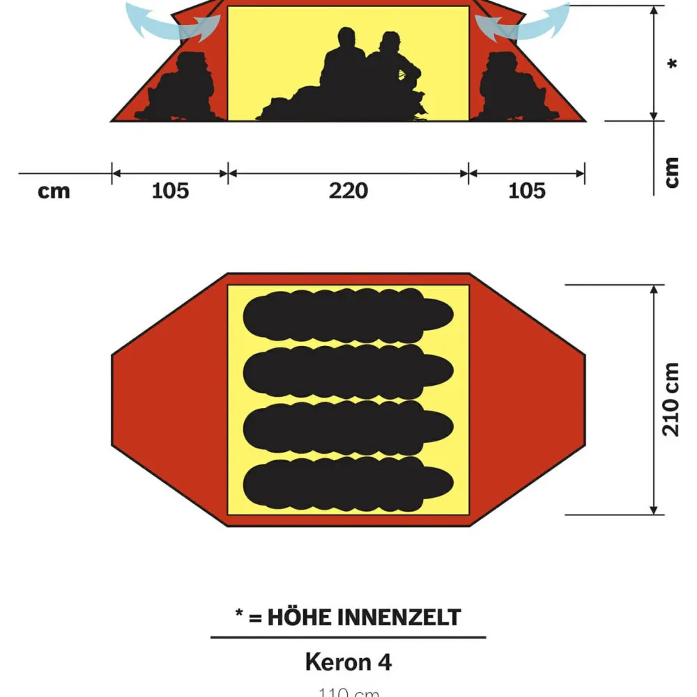 Geräumiges 4-Personen-Zelt, 4,4 m², Blick auf den See und auf die Berge, sucht Käufer – das Keron 4 von Hilleberg ist ein super Zelt für kleine Gruppen. Egal ob es auf Trekkingtour durch Südschweden geht oder auf Expedition nach Grönland, das Tunnelzelt macht alles mit. Das Keron 4 bietet Platz für vier Personen und ist als Ganzjahres-Modell ausgelegt. Das Zelt ist Teil der “Black Label“ Serie von Hilleberg, das sind Zelte bei denen der Fokus auf maximale Stärke und Wetterschutz gesetzt wurde.Entsprechend diesem Anspruch setzt Hilleberg beim Keron 4 auf hochwertigste, stabilste Materialien. Das Außenzelt besteht aus dem bewährten, beidseitig silikonbeschichteten Kerlon 1800. Das Material ist reißfest, wasserdicht und UV-beständiger als die meisten Nylongewebe. Die Bodenwanne des Innenzelts ist hochgezogen und besteht aus einem abrieb- und stichfesten Material mit einer Wassersäule von 7000 mm. So kann auch bei hohem Druck (wie er beim Knien auf dem Zeltboden auftritt) keine Nässe in das Zelt dringen. Auch die übrigen Materialien genügen höchsten Ansprüchen: die Reißverschlüsse sind von YKK, das Gestänge kommt vom Markenhersteller DAC.In den beiden Apsiden ist Platz genug für das Tourengepäck und dank der beiden Eingänge gibt es immer eine Möglichkeit, auf der windabgewandten Seite das Zelt zu verlassen. Zu guter Letzt ist das Keron 4 durch die Koppelung von Innen- und Außenzelt schnell und unkompliziert aufzubauen – was will man mehr?