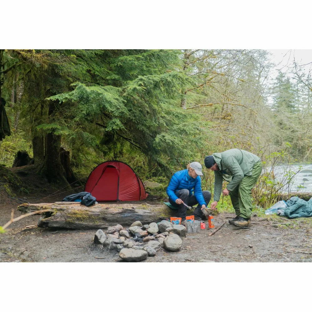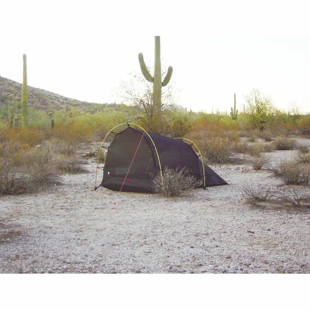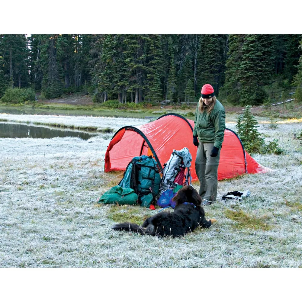 Egal ob im gleichnamigen Gebirgszug oder in den Wäldern Kanadas – auf das Nallo 2 von Hilleberg kann man sich immer verlassen. Das Zweipersonenzelt besitzt eine praktische Tunnelkonstruktion, wodurch sich ein sehr gutes Verhältnis von Stellfläche zu nutzbarer Innenfläche ergibt. Dies ist die logische Folge der steilen Seitenwände und des senkrechten Eingangs. Das Nallo ist als Ganzjahres-Zelt konstruiert und ist Teil der ‚Ultraleicht + stabil‘ Serie von Hilleberg.Dementsprechend liegt das Hauptaugenmerk beim Nallo 2 auf der Kombination von Allwetter-Stabilität und niedrigem Gewicht, weniger auf maximaler Stabilität, wie sie bei den Expeditionsmodellen Anwendung findet. Das Nallo besitzt eine großzügig geschnittene Apside, die Stauraum für das Tourengepäck bietet. So ist der Trekkingrucksack vor Regenschauern geschützt, ohne dabei Platz im Innenzelt zu verschwenden.Gefertigt ist das Zelt aus Kerlon 1200, dem bewährten Zeltmaterial von Hilleberg. Das Nylongewebe ist mit einer hochwertigen Silikonbeschichtung versehen, welche die Reißfestigkeit erhöht und gleichzeitig die UV-Beständigkeit des Materials verbessert. Das atmungsaktive Innenzelt reduziert, in Verbindung mit der effektiven Belüftung, die Kondensbildung im Inneren des Zelts. Das Bodenmaterial ist besonders robust und abriebfest. Durch die hohe Wassersäule kann auch bei starkem Druck auf den Bodenstoff (wie es beim Knien auf dem Zeltboden auftritt) keine Nässe durch das Material gedrückt werden. Zu guter Letzt lässt sich das Nallo auch noch leicht von einer einzelnen Person aufbauen – was will man mehr?