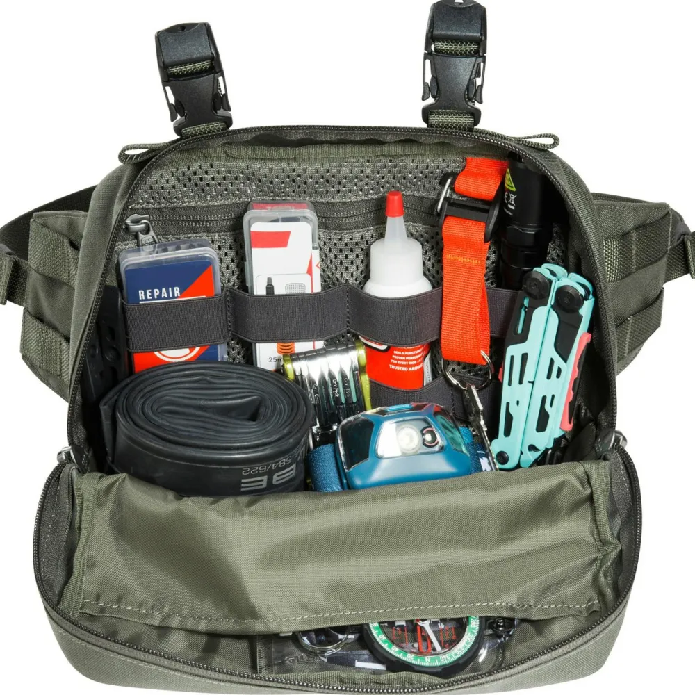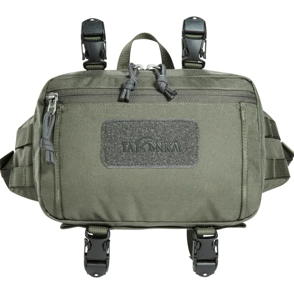 Die Hip & Bar Pouch BC von den deutschen Outdoor-Experten von Tatonka ist ein interessantes Chamäleon unter den Taschen. Denn das feine Teil kann sowohl als Hüfttasche, als auch als Lenkertasche genutzt werden. Beim Material setzt man auf extrem widerstandsfähiges, 500 Denier starkes Cordura, sodass Deine Mitnehmsel allesamt bestens geschützt sind, und mit fünf Litern Volumen ist auch der Stauraum ordentlich bemessen. Ein Tragegriff und eine Fronttasche mit Reißverschluss runden die Hüfttasche ab.