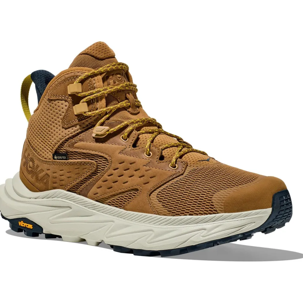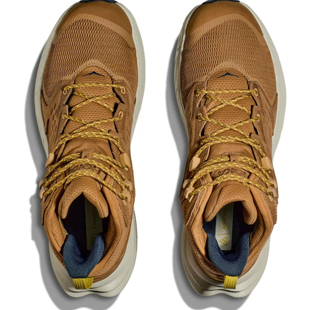 Wenn Du einen Allround-tauglichen, knöchelhohen Wander- und Multisportschuh für jedes Wetter suchst, dann schau Dir mal den Anacapa 2 Mid GTX der Laufschuh-Spezialisten von HOKA an! Mit den Anacapa 2 Mid GTX kannst Du die Welt so richtig entdecken. Denn durch die bewährte, wasser- und winddichte GORE-TEX-Technologie halten sie Deine Füße bei jedem Wetter warm, trocken und komfortabel. Die EVA-Zwischensohle bietet dabei optimale Dämpfung und Stabilität, während die Vibram® Megagrip-Außensohle mit ihren 5mm langen Stollen zuverlässigen Halt auf ganz unterschiedlichen Oberflächen gewährleistet. Der halbhohe Schaft stützt die Fußgelenke zusätzlich.
