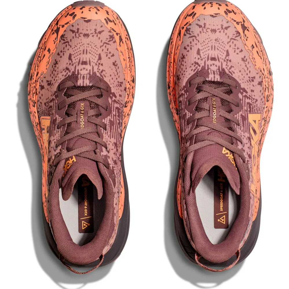 Das gewobene, äußerst atmungsaktive Mesh des Obermaterials ist nicht nur extrem leicht, sondern auch sehr angenehm zu tragen. Und die schützende Zehenkappe weißt Du nicht nur als (Trail)Runnerin zu schätzen, sondern auch dann, wenn Du den Women’s Speedgoat 6 GTX einfach zum Wandern oder bei Ausflügen in die Natur trägst. Die bewährte Vibram Megagrip-Laufsohle mit 5mm langen Stollen sorgt dabei für besten Grip und ordentlich Traktion. Zudem bietet die Sohle eine Besonderheit, denn in Anlehnung an das in jedem Gelände flinke, agile Namensgeber-Tier wurden die Stollen den Hufen einer Ziege nachempfunden!Deine Vorteile im Überblick: