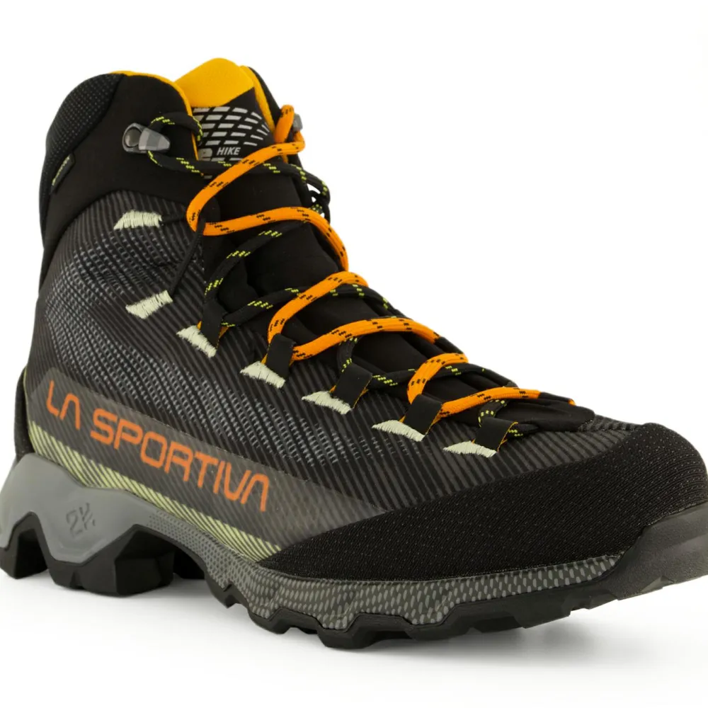 Die Aequilibrium Hike GTX von La Sportiva bringen alles mit, was Du für anspruchsvolle Bergwanderungen brauchst! Die mittelhohen Wanderschuhe besitzen ein synthetisches Obermaterial mit atmungsaktiven Eigenschaften, das trotz seiner Leichtigkeit ein hohes Maß an Strapazierfähigkeit bietet. Die integrierte GORE-TEX Extended Comfort Membran macht die Schuhe einhundert Prozent wasserdicht, ohne Abstriche in Sachen Tragekomfort zu machen. Darüber hinaus sorgt das patentierte 3D Flex System für mehr Flexibilität im Knöchelbereich, während die innovative Double Heel Fersenkonstruktion zusätzlichen Halt bietet.