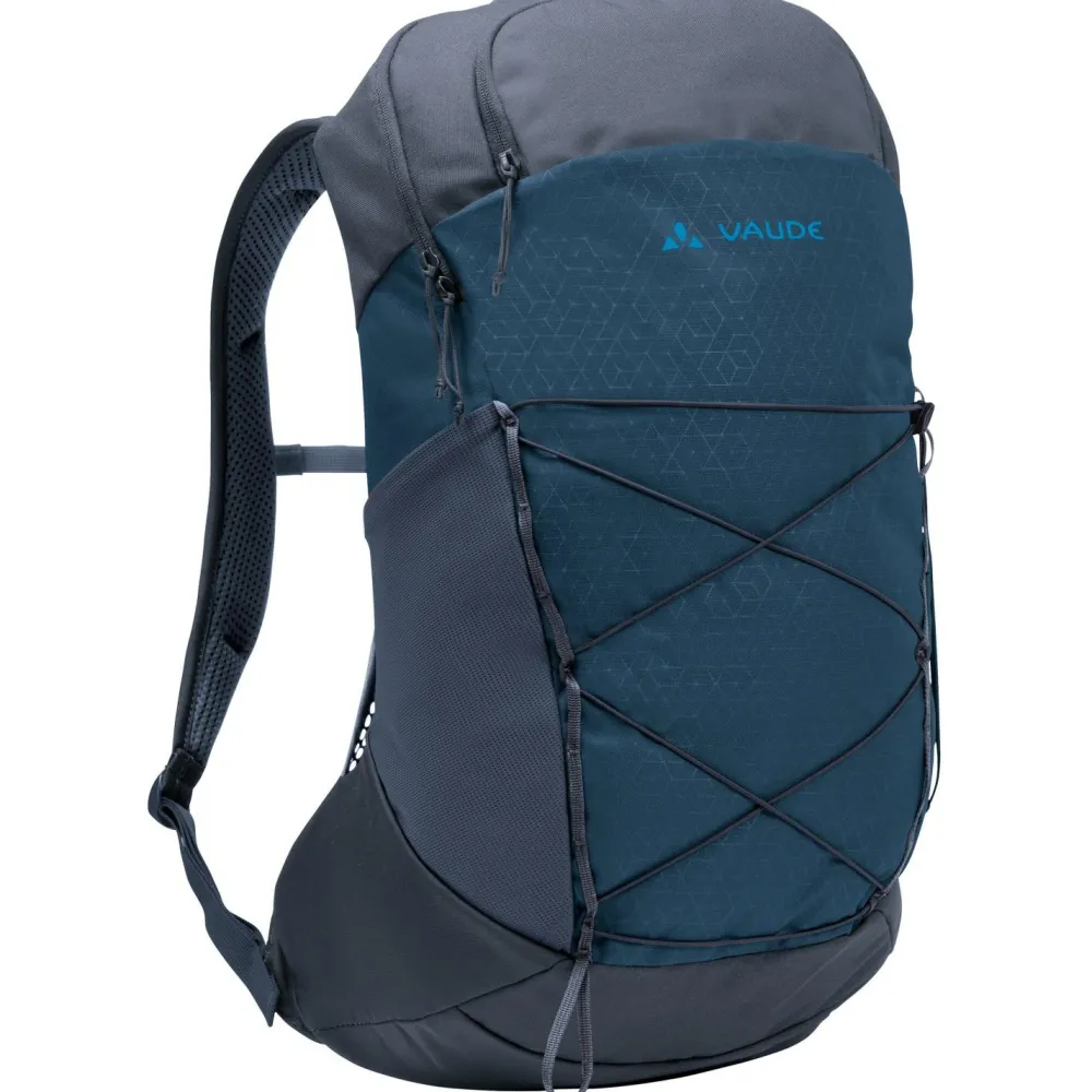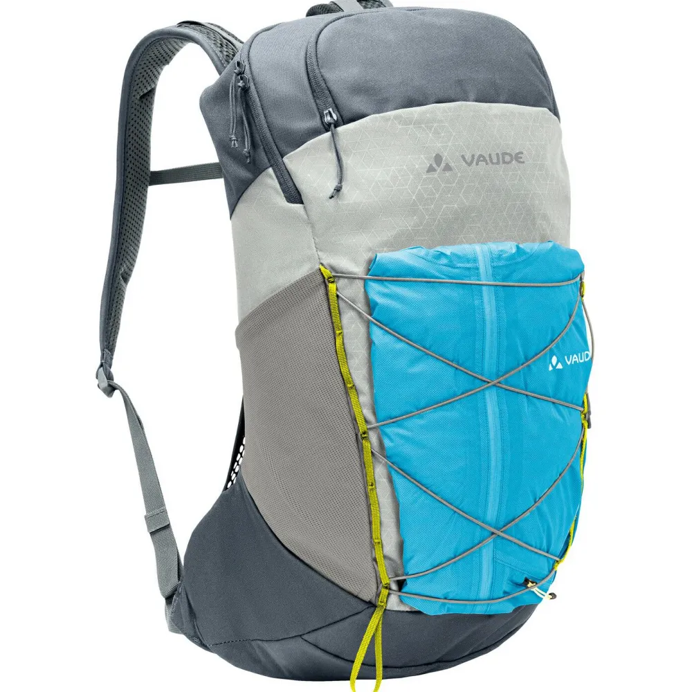 In den Agile Air 20 Wanderrucksack von Vaude passen bei 20 Liter Volumen zwischen 3 und 8 kg Proviant und Ausrüstung. Für kurze Touren und Tageswanderungen hat der Rucksack damit genügend Reserven, um alle wichtigen Utensilien zu transportieren. Der schmal geschnittene Rucksack ist mit ergonomisch geformten ErgoShape Schultergurten und einem gut belüfteten Aeroflex 3D Rückensystem ausgestattet. So sorgt der Rucksack beim Wandern für angenehme Ventilation und tolle Bewegungsfreiheit. Der Agile Air 20 ist für die Verwendung von Trinksystemen vorbereitet und verfügt über eine extra Fronttasche, eine elastische Seitentasche und eine frontale Gummizughalterung. Eine Stockhalterung, der abnehmbare Hüftgurt und ein Brustgurt gehören zur Ausstattung.